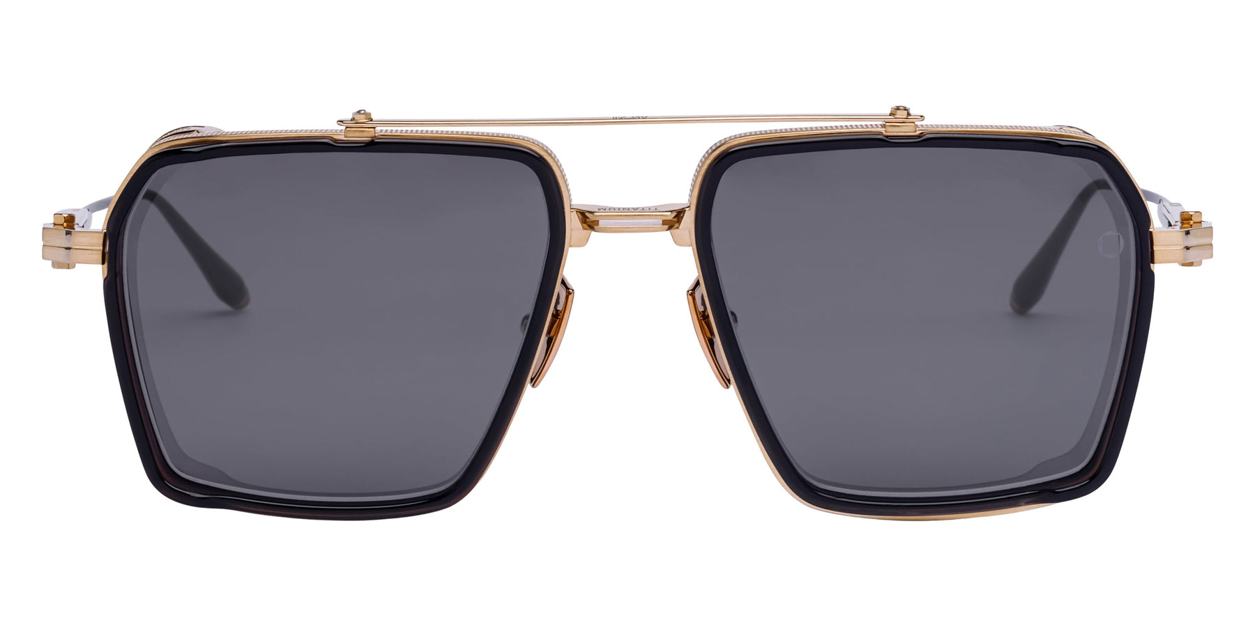 Tiros Sunglasses by AKONI. Color: Black Iron, Brushed Black Palladium, Brushed White Gold, Brushed Silver, Brushed 12k Gold/Crystal Black, Size: 58-18-152. If you're looking for eyewear that oozes luxury and intelligence, Akoni is one of the most impressive brands out there. Their focus on design, materials, finishes and functionality continues to push the envelope, delivering eyewear that is not only visually appealing, but also impeccably crafted. The frame masterfully blends a classic shape with bold lines for a look that's both confident and sophisticated. Much like a refreshing departure from the conventional styles typically found in eyewear. Look no further than EuroOptica for the stunning, uniquely modern Akoni frame.