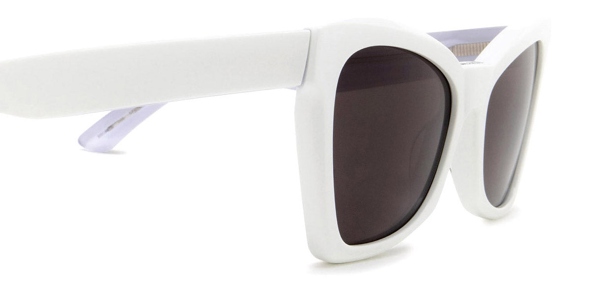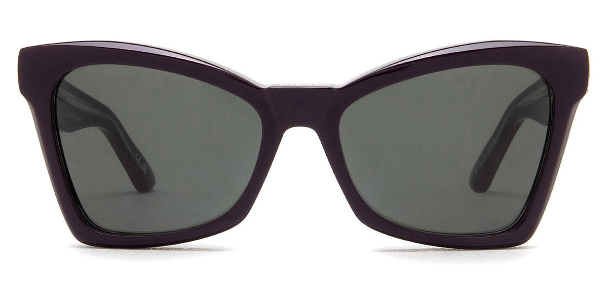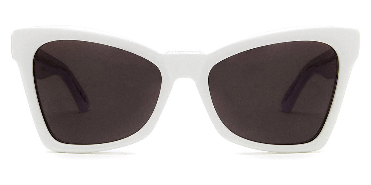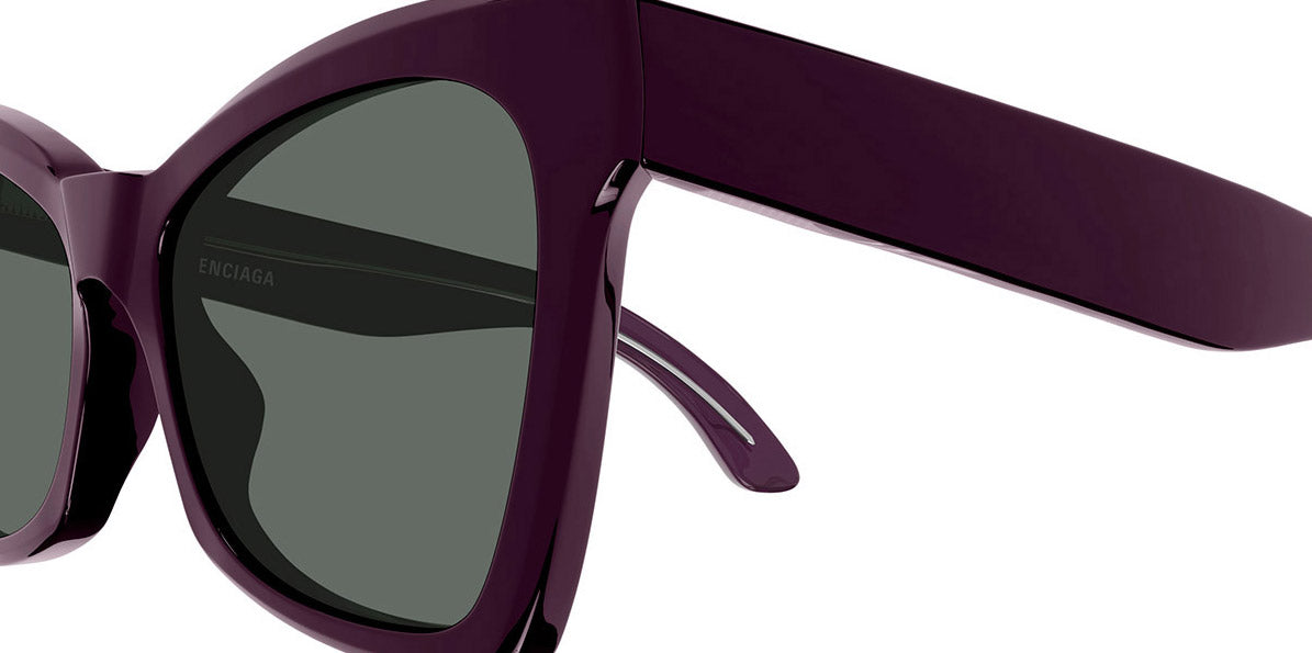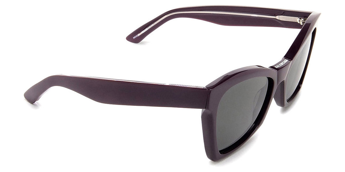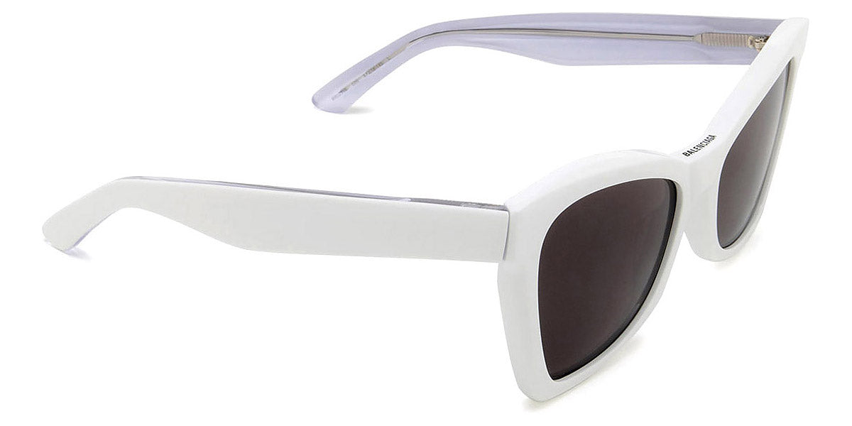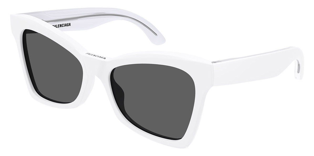BB0231S Sunglasses by Balenciaga. Shape: Cat-Eye, Material: Acetate, Color: Black, Size: 57-18-145. The Balenciaga Eyewear collections consist of sunglasses and eyeglasses frames that combine a simple new style with the fashion house's desire to be inspired by technological innovation in its shapes and silhouettes. They embody revolutionary trends and fashionable realism. All models of glasses are marked with the brand's corporate logo, interpreted in their own way in different styles. The black double monogram "B" is set on transparent nose pads, creating a floating and weightless effect. The logo of the brand's sunglasses is applied to the mirror coating, which in different variations is always presented on the left temple. Extraordinary designs and unconventional materials mixed with more classic ones make Balenciaga eyewear unique and easily recognizable.