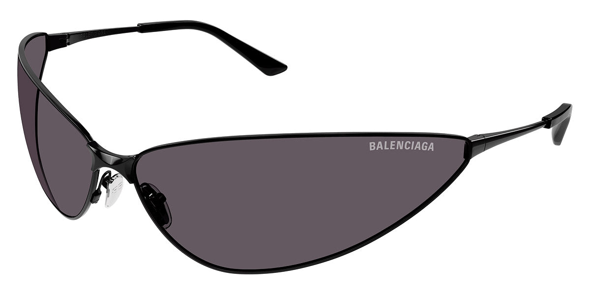 BB0315S Sunglasses by Balenciaga. Color: Black / Gray lenses, Size: 93-14-110. The Balenciaga Eyewear collections consist of sunglasses and eyeglasses frames that combine a simple new style with the fashion house's desire to be inspired by technological innovation in its shapes and silhouettes. They embody revolutionary trends and fashionable realism. All models of glasses are marked with the brand's corporate logo, interpreted in their own way in different styles. The black double monogram "B" is set on transparent nose pads, creating a floating and weightless effect. The logo of the brand's sunglasses is applied to the mirror coating, which in different variations is always presented on the left temple. Extraordinary designs and unconventional materials mixed with more classic ones make Balenciaga eyewear unique and easily recognizable.