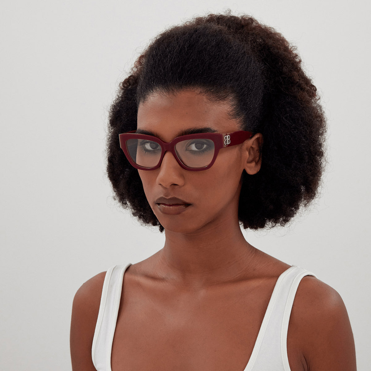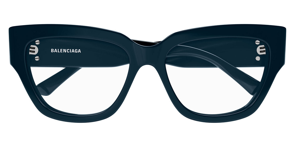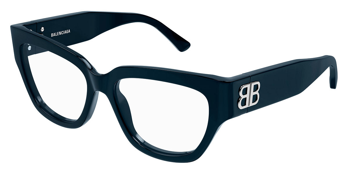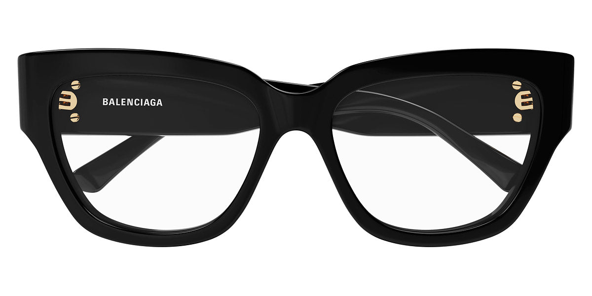 BB0326O Eyeglasses by Balenciaga. Color: Black, Size: 53-16-135. The Balenciaga Eyewear collections consist of sunglasses and eyeglasses frames that combine a simple new style with the fashion house's desire to be inspired by technological innovation in its shapes and silhouettes. They embody revolutionary trends and fashionable realism. All models of glasses are marked with the brand's corporate logo, interpreted in their own way in different styles. The black double monogram "B" is set on transparent nose pads, creating a floating and weightless effect. The logo of the brand's sunglasses is applied to the mirror coating, which in different variations is always presented on the left temple. Extraordinary designs and unconventional materials mixed with more classic ones make Balenciaga eyewear unique and easily recognizable.