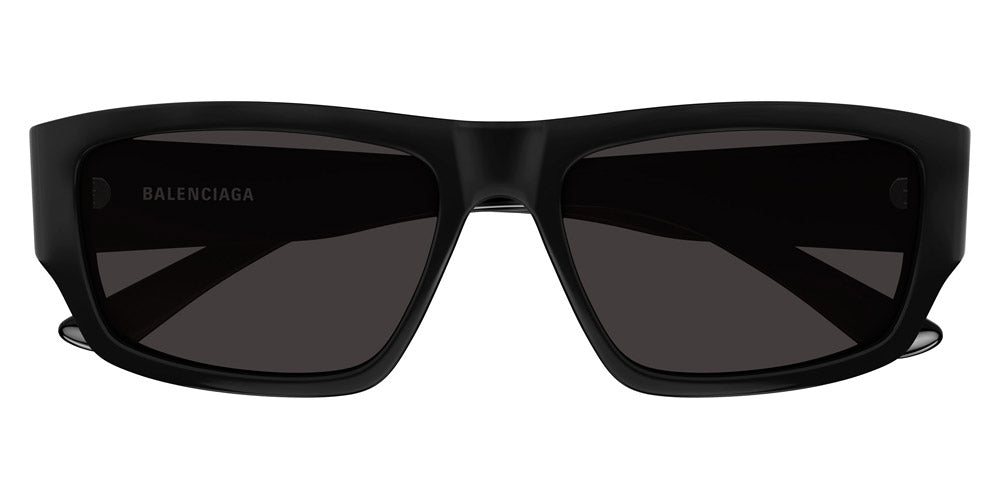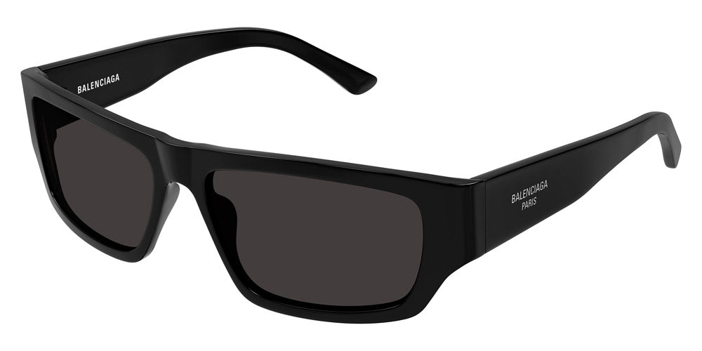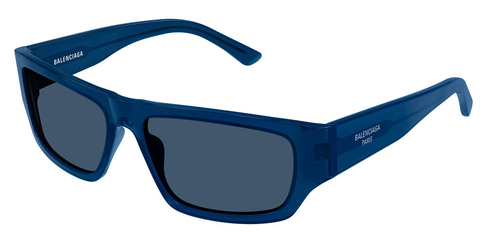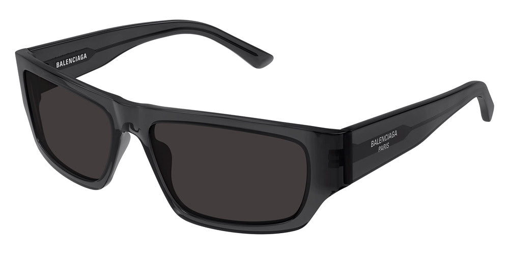 BB0366S Sunglasses by Balenciaga. Color: Black / Gray, Blue / Blue, Gray / Gray, Size: 58-16-145. The Balenciaga Eyewear collections consist of sunglasses and eyeglasses frames that combine a simple new style with the fashion house's desire to be inspired by technological innovation in its shapes and silhouettes. They embody revolutionary trends and fashionable realism. All models of glasses are marked with the brand's corporate logo, interpreted in their own way in different styles. The black double monogram "B" is set on transparent nose pads, creating a floating and weightless effect. The logo of the brand's sunglasses is applied to the mirror coating, which in different variations is always presented on the left temple. Extraordinary designs and unconventional materials mixed with more classic ones make Balenciaga eyewear unique and easily recognizable.
