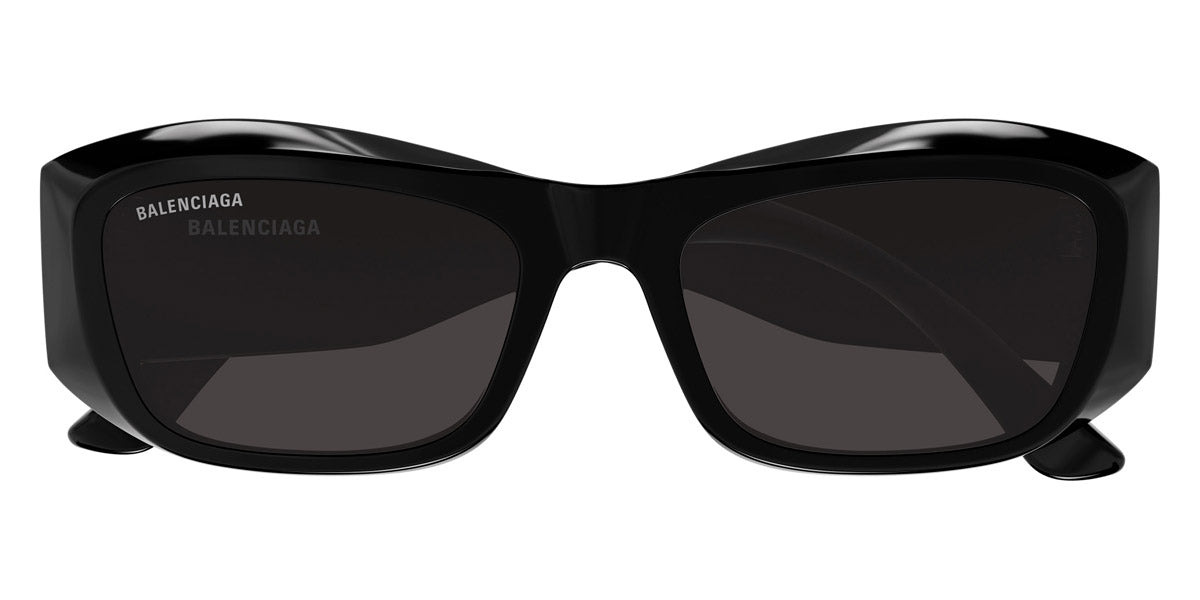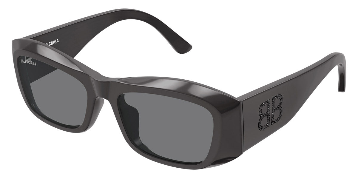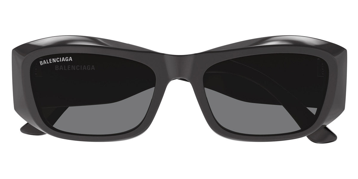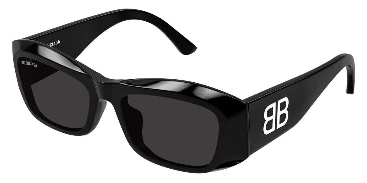 BB0397SA Sunglasses by Balenciaga. Color: Black, Grey, Size: 54-19-145. The Balenciaga Eyewear collections consist of sunglasses and eyeglasses frames that combine a simple new style with the fashion house's desire to be inspired by technological innovation in its shapes and silhouettes. They embody revolutionary trends and fashionable realism. All models of glasses are marked with the brand's corporate logo, interpreted in their own way in different styles. The black double monogram "B" is set on transparent nose pads, creating a floating and weightless effect. The logo of the brand's sunglasses is applied to the mirror coating, which in different variations is always presented on the left temple. Extraordinary designs and unconventional materials mixed with more classic ones make Balenciaga eyewear unique and easily recognizable.