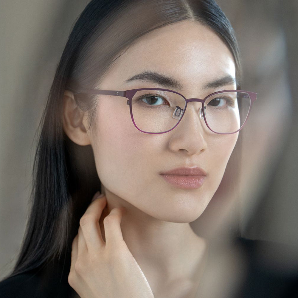 ROSLYN Eyeglasses by Blackfin. Color: DAMASCUS BURGUNDY/ORCHID PINK 1871 , STORM NAVY BLUE/ARTIC BLUE 1668 , SMOKY BROWN/BLUSH PINK 1826 , PINE GREEN/HEMLOCK GREEN 1865 , PERSIAN INDIGO/DIGITAL LAVENDER 1872 , Size: 52-17-135, Material: Titanium