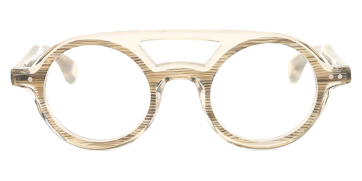 BARRAGAN Eyeglasses by Blake Kuwahara. Color: Midnight, Shale, Taupe, Size: 45-25-140. Distinctly modern and undeniably stylish, the BARRAGAN eyeglasses reinterpret the aviator shape with a fresh, contemporary twist. Made from the finest Japanese acetate, this model is both durable and light, ensuring all-day comfort. The outer contour is available in soft tones like shale and taupe, as well as bold options like black and tortoise. The inner outline and upper half of the bridge offer an airy, transparent contrast, making the BARRAGAN a sophisticated choice for those who dare to be different.