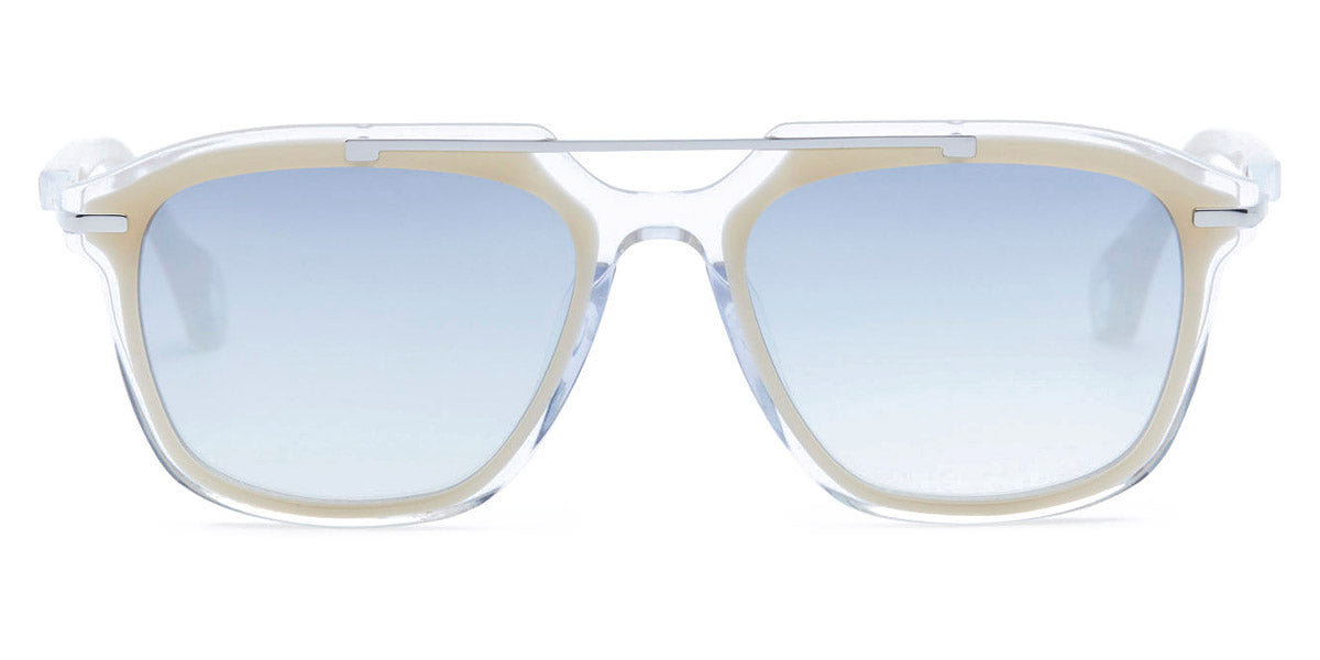 DELANO SUN Sunglasses by Blake Kuwahara. Color: Frost, Olive Horn, Size: 53-19-145. The DELANO SUN is here to give your classic aviators an innovative twist. These sunglasses feature a striking dual-layer design in translucent acetate, a material known for its exceptional durability and lightness. The premium lenses, coming in various tints, not only protect your eyes from harmful ultraviolet rays but also ensure that you do so with flair. Effortlessly marrying undying classic and modern edge, the DELANO SUN is a must-have for a fashionable summer.