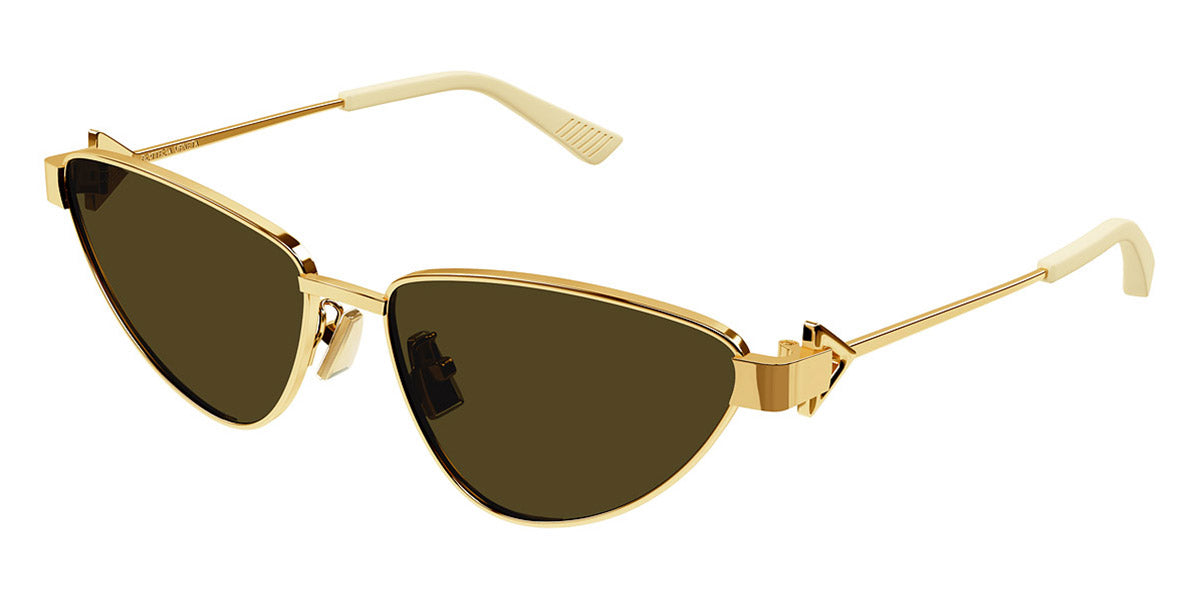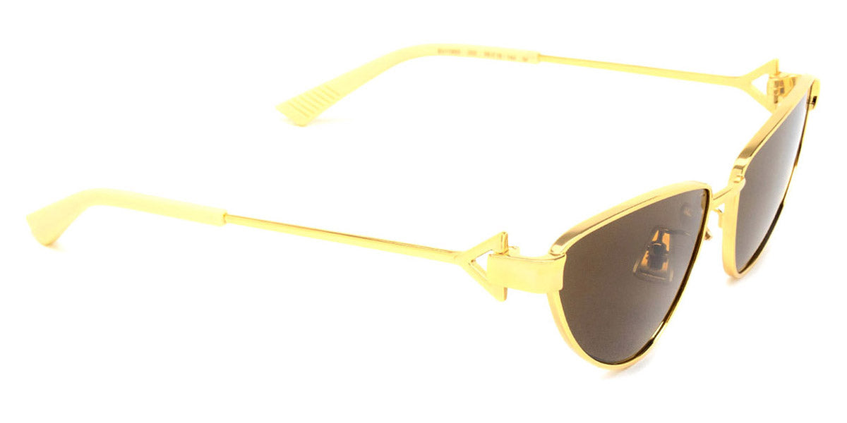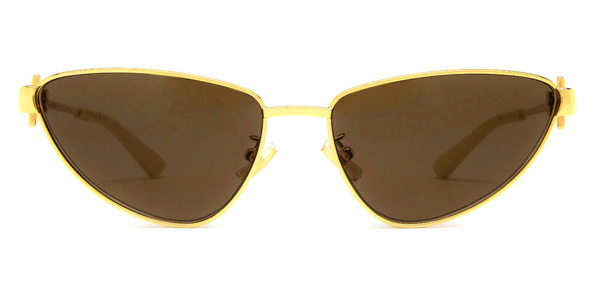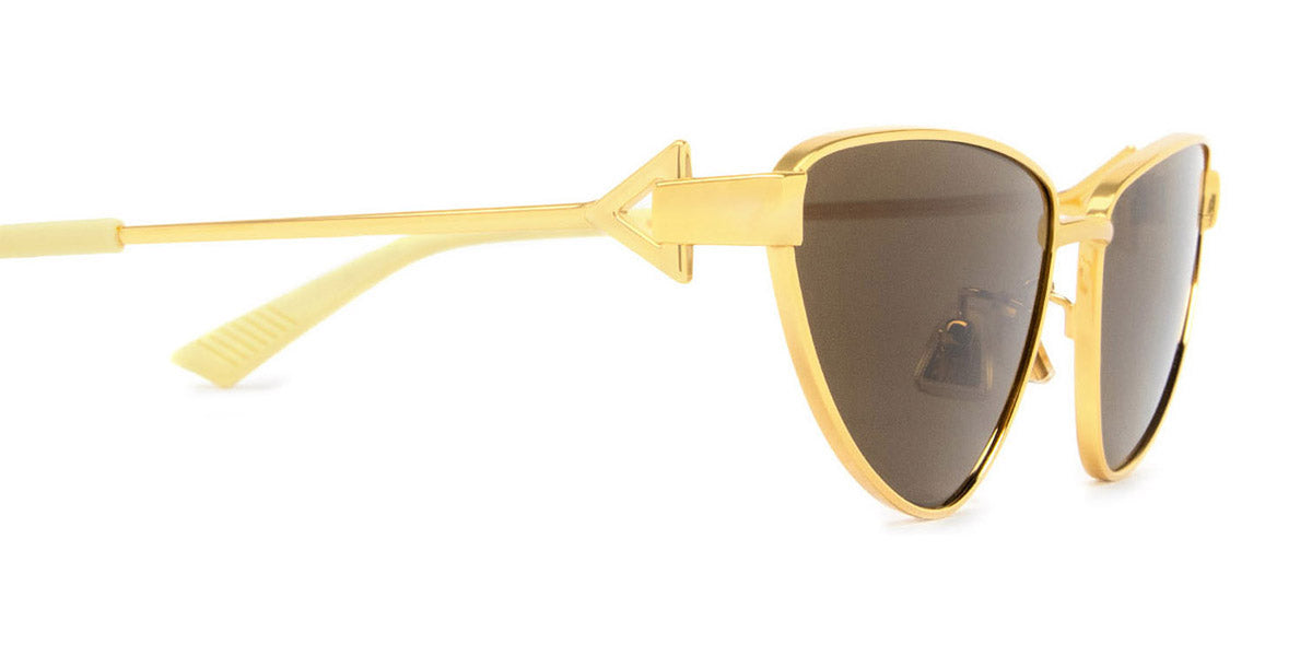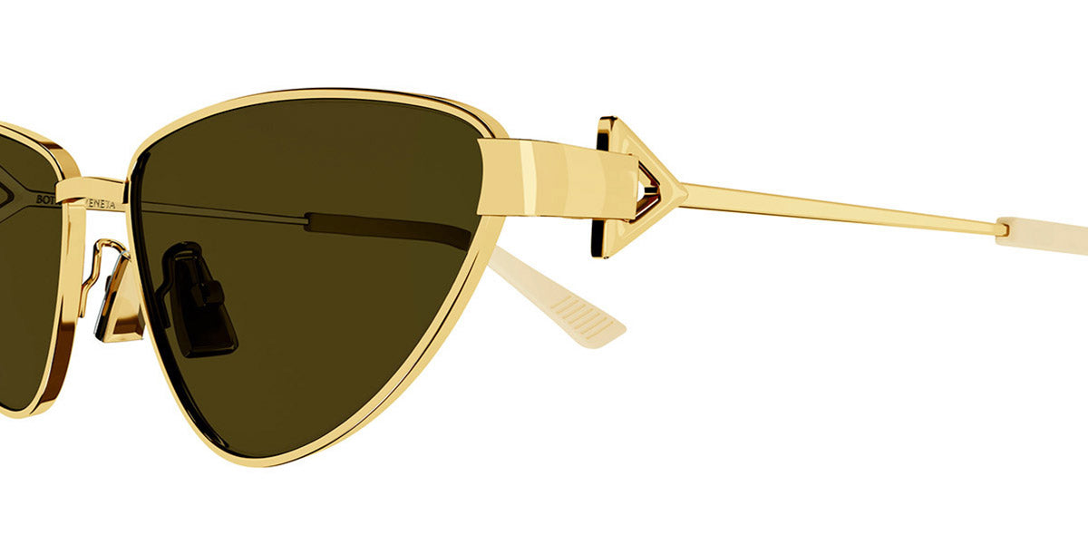 BV1186S Sunglasses by Bottega Veneta. Material: Metal, Shape: Cat-Eye, Color: Gold / Brown, Green / Green, Size: 59-16-140. These sunglasses not only offer protection from the sun but also serve as an extension of one’s personal style, enhancing both casual and formal ensembles. Their unique character makes them a versatile addition to any wardrobe, ensuring that wearers feel both chic and confident. Bottega Veneta's dedication to innovation shines through, making these sunglasses a coveted accessory for those who appreciate the finer things in life.