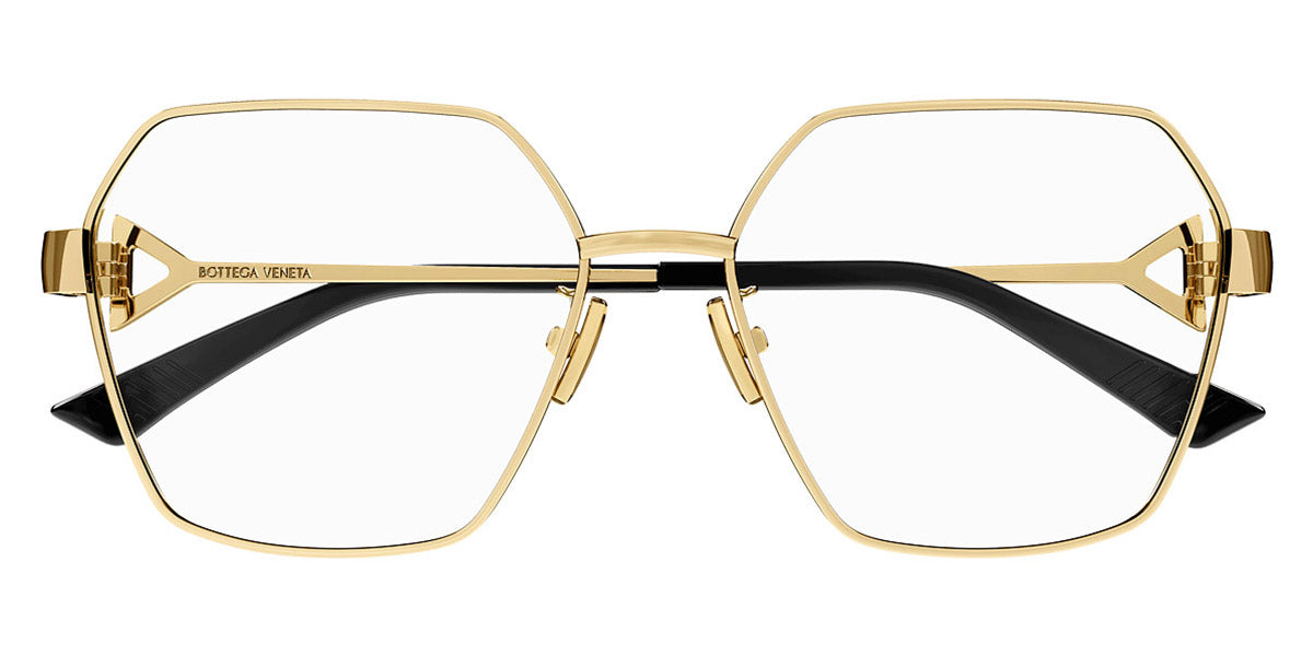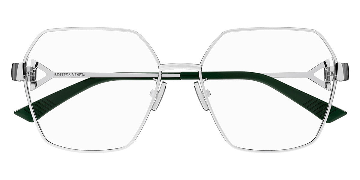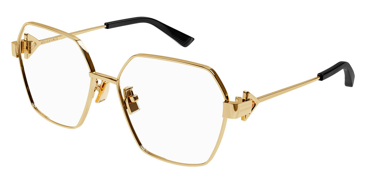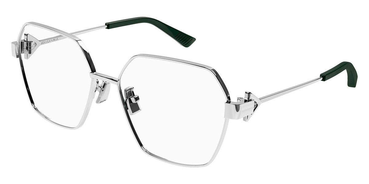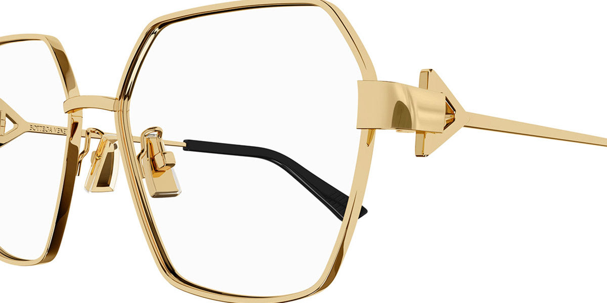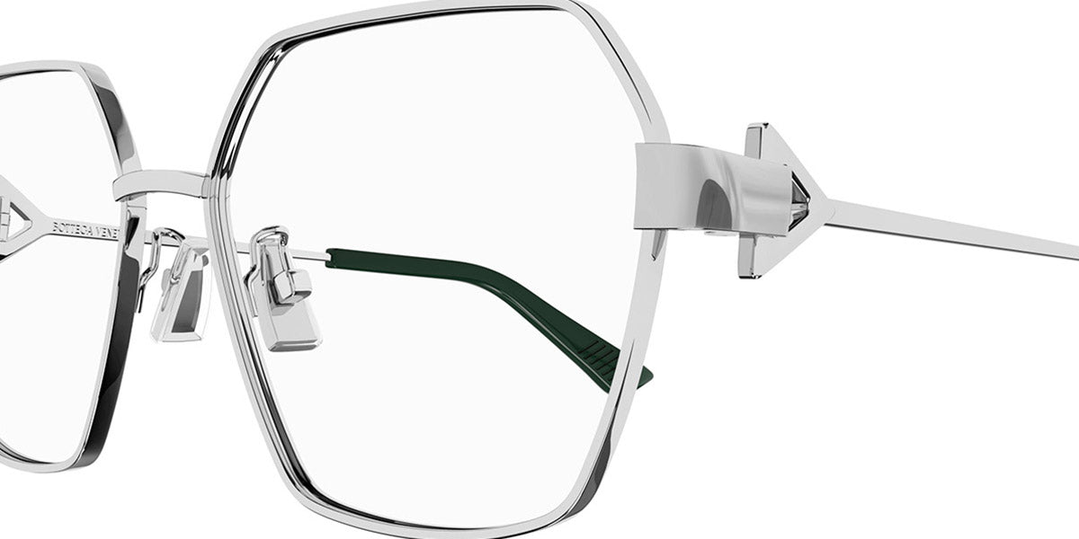 BV1224O Eyeglasses by Bottega Veneta. Material: Metal, Shape: Geometric, Color: Gold, Silver, Size: 57-16-145. Introducing the BV1224O eyeglasses, a testament to Bottega Veneta’s dedication to luxury and refinement. These eyeglasses are designed for the discerning individual who values both form and function. The aesthetic draws inspiration from classic design principles, resulting in a piece that is both timeless and contemporary. Perfect for daily wear, the BV1224O eyeglasses provide a unique balance of comfort and sophistication, making them suitable for various settings—from business meetings to social gatherings. Wearing these eyeglasses transforms an everyday outfit into something special, showcasing personal style effortlessly.
