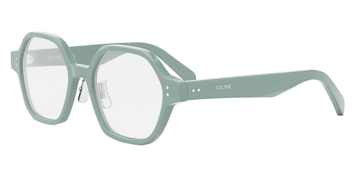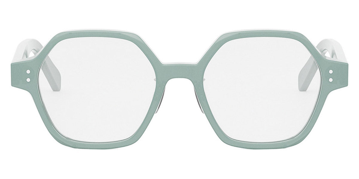 CL50142F Eyeglasses by Celine. Color: 093 Shiny Lime Transparent, 001 Shiny Black, Size: 51-18-140. The bold frames and premium lenses make CL50142F sunglasses a perfect accessory for sunny days, adding a touch of elegance to any outfit. These shades by Celine exude glamour and sophistication with their oversized, retro-inspired design. Get excellent UV protection while ensuring you look effortlessly chic!