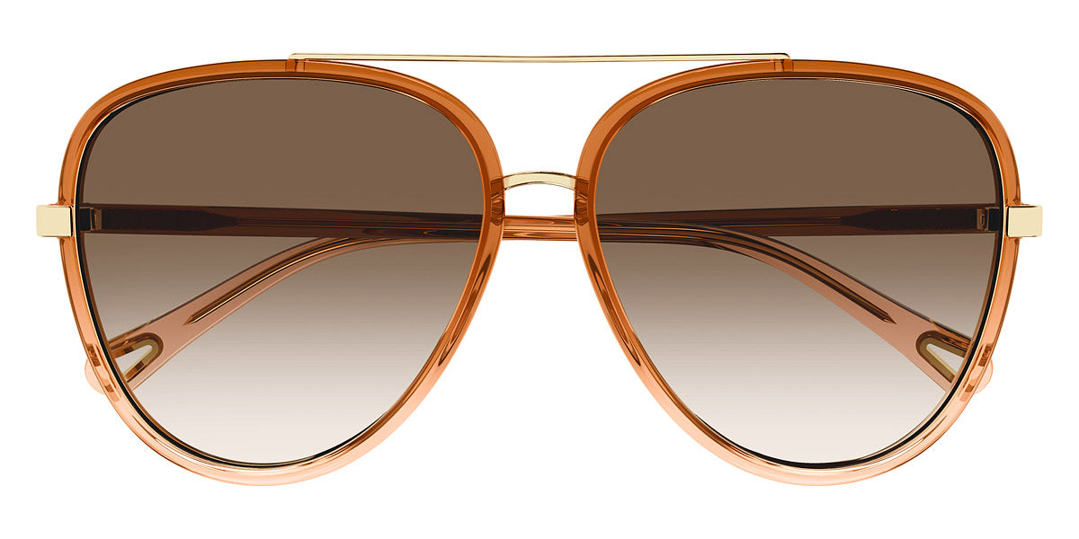 CH0129S Sunglasses by Chloé. Color: Brown, Gray, Orange, Size: 58-14-140. Inspired by the 70s bohemian spirit, Chloé glasses are sophisticated and elegant pieces that exude refinement and attitude while elevating the Maison’s vision of modern femininity. From bold oversize contours to subtle and sleek silhouettes, each Chloé frame exemplifies the brand’s precise craftsmanship and artisan flair. It utilizes bio-based and lower-impact materials that are masterfully combined with premium-quality lenses to get nothing but remarkable eyewear designs. The head-turning metal accents finish the look.