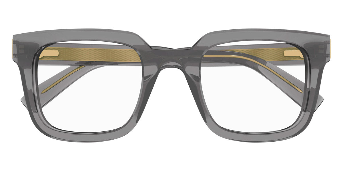 DU0032O Eyeglasses by Dunhill.Shape: Square, Material: Acetate, Color: Black,Brown,Gray,Havana, Size: 51-24-145. Laconic yet bold design with smooth lines and exquisite detailing are those distinctive features that make dunhill glasses stand out from a variety of competitors. The discreet classic shapes are filled with the spirit of English aristocracy, which attracts men throughout the world. Designed for fashion-forward gents, the frames create a masculine and dramatic look. Masterfully crafted in Italy from the finest acetate, titanium, and stainless steel, the spectacles are durable and ultra-comfortable. The unique British style can be traced in every detail of the dunhill's glasses, from precision-cut sleek handles to premium-quality lenses and iconic embellishments, such as the Engine Turn pattern with custom lock hinge or a textural engraving at the handles that references the iconic Rollagas lighter in a gold-plated design. Being the modern interpretation of classic eyewear, the dunhill glasses are just perfect for discreet, high-minded, and confident men.