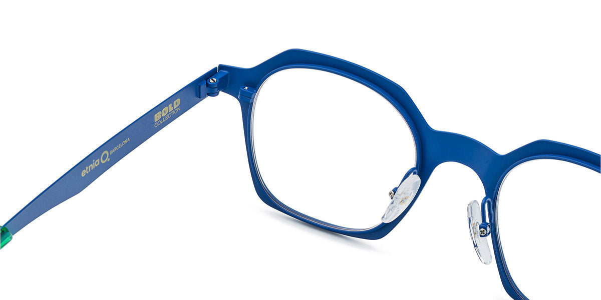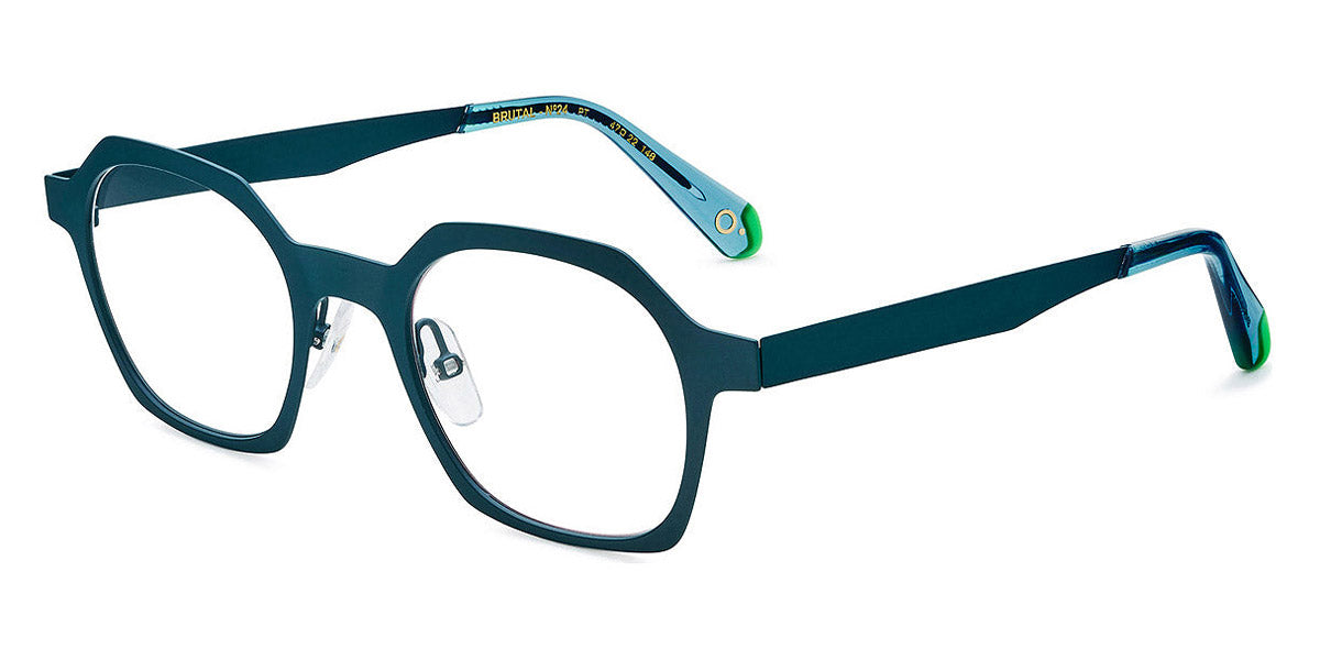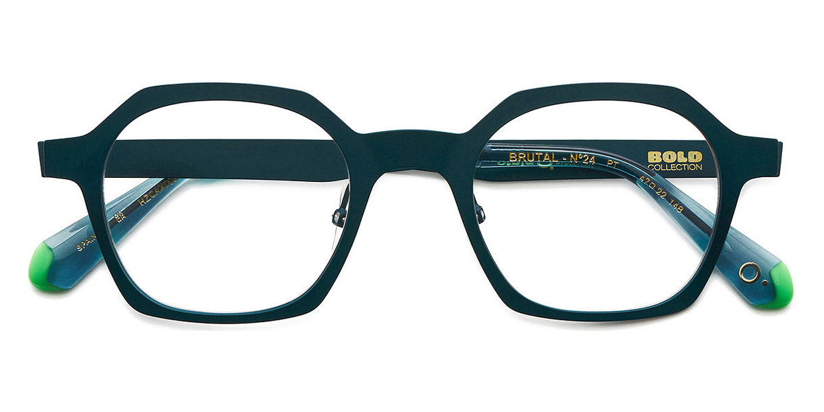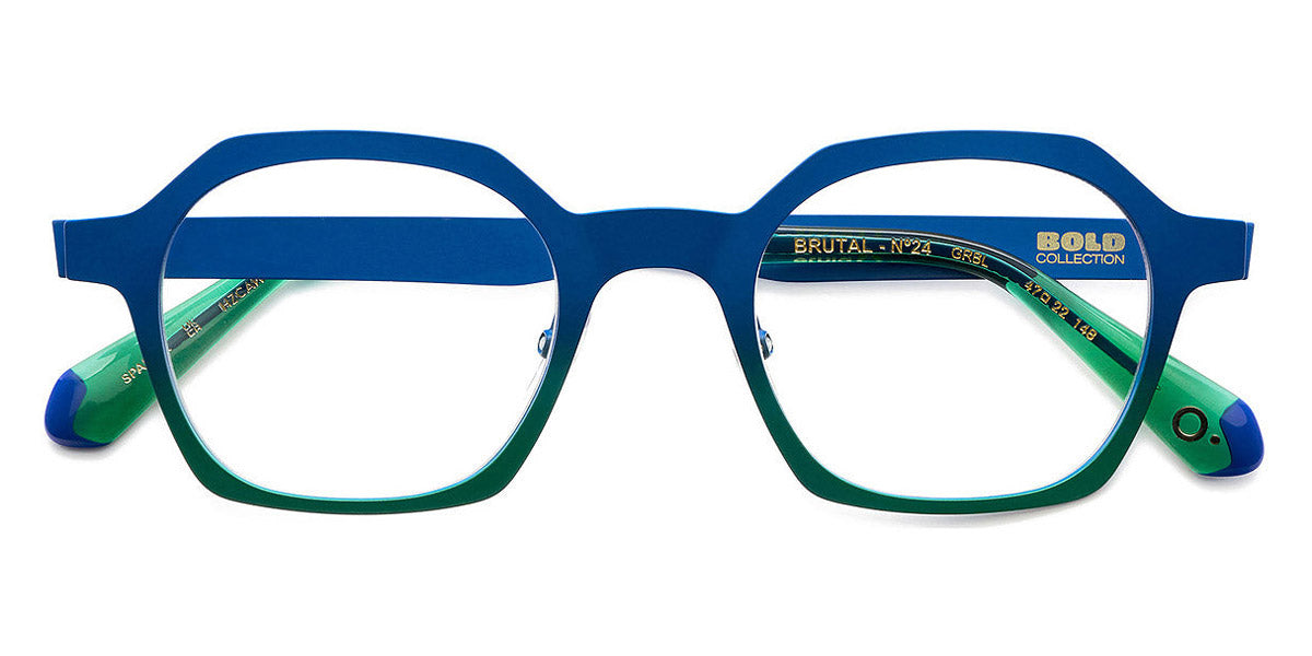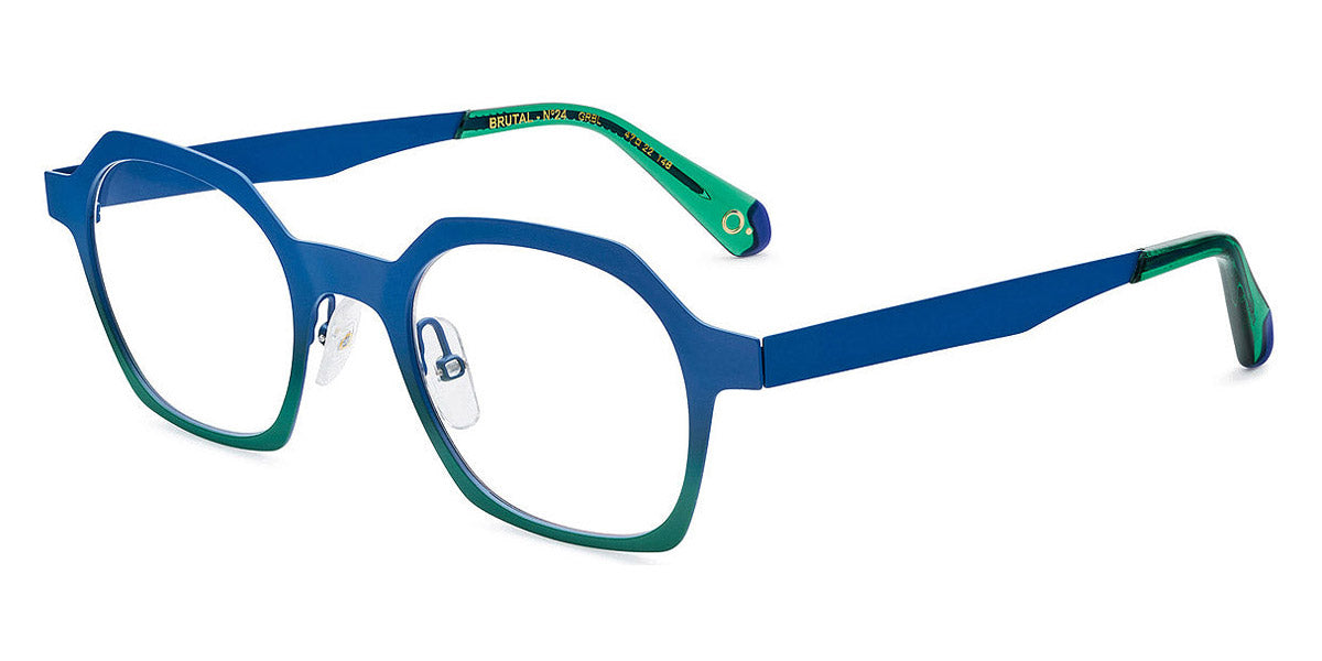 BRUTAL NO.24 Eyeglasses by Etnia Barcelona. Color: GRBL Green/Blue, PT Grey, RD Red, Size: 47-22-148. With its clean, angular panto design, BRUTAL No.24 emphasizes minimalism with eye-catching hues. The frame is lightweight yet bold, constructed to stand up to daily wear. Color options are vividly jubilant, with bright accents on the temples. Perfect for those with a strong sense of style, BRUTAL No.24 easily elevates any outfit.