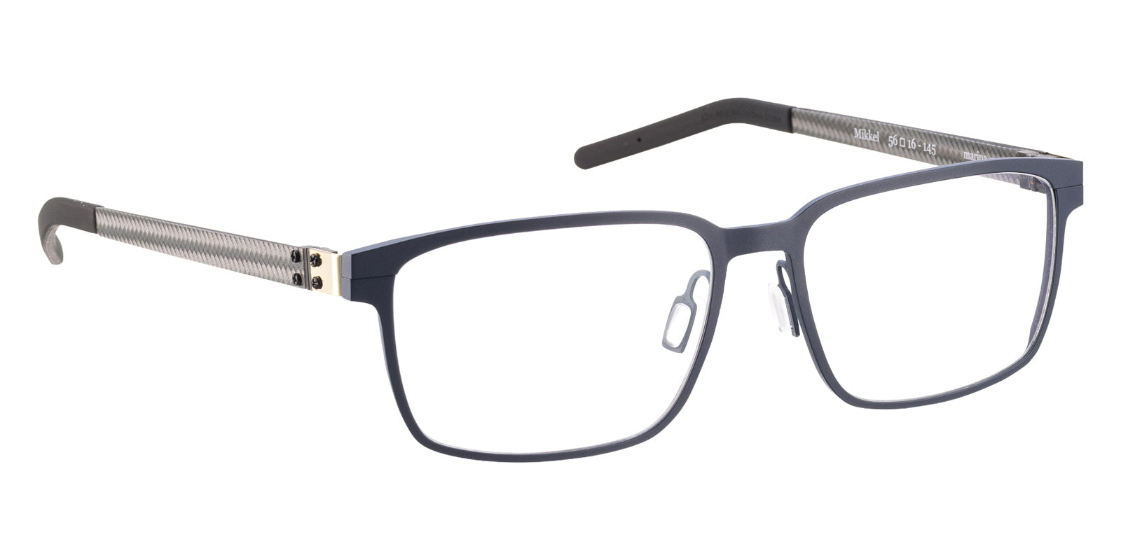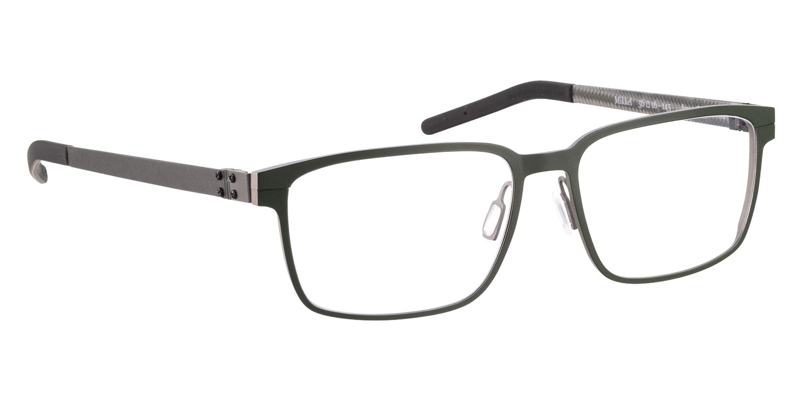 MIKKEL Eyeglasses by BLAC. Color: FOREST-FLINT, IRON-CAPRI, BLACK-FERN, MARINA-CAPRI, Size: 56-16-145, Material: Titanium / Carbon