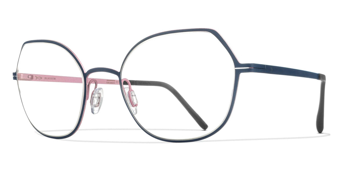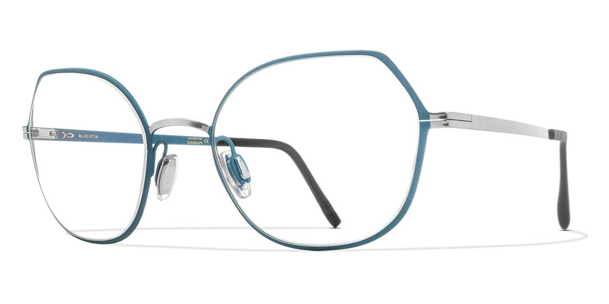CLAIRE Eyeglasses by Blackfin. Color: Green/Silver, Brown/Pink, Blue/Pink, Pink/Silver, Metallic Magenta, Size: 53-19-145. The Claire eyeglasses offer a chic and contemporary design, perfect for making a stylish impression. With its sleek titanium frame and modern aesthetics, the Claire provides both durability and elegance. These glasses are a fantastic choice for anyone looking to add a touch of sophistication to their eyewear collection.
