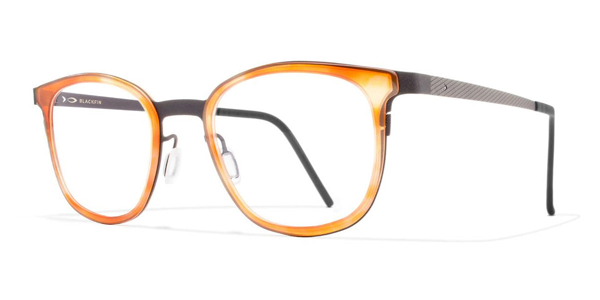LOCKEPORT Eyeglasses by Blackfin. Color: Gunmetal/Black, Gunmetal/Havana, Brown/Honey, Dark Grey/Grey, Blue/Aviation Blue, Size: 49-21-145. The LOCKEPORT eyeglasses by Blackfin offer a contemporary design that is both stylish and functional. These frames are crafted from high-quality materials, ensuring durability and comfort. The sleek silhouette makes LOCKEPORT a versatile choice for any occasion, whether professional or casual. These eyeglasses are perfect for individuals who appreciate modern design with a touch of sophistication.