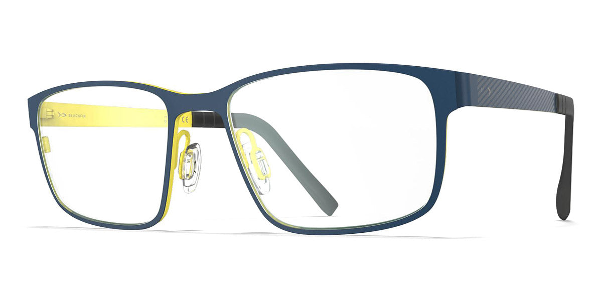 OSTBERG Eyeglasses by Blackfin. Color: Black/Green, Black/Red, Blue/Dove Brown, Blue/Yellow, Dark Blue/Bright Blue, Size: 51-17-145. Simple yet striking, the Blackfin OSTBERG wayfarers offer a clean, classic look with contemporary nuances. The design focuses on sleek lines and refined clarity, making it a versatile choice for any occasion. With a titanium-based construction that emphasizes comfort and durability, these glasses are a sure choice for those wishing to embrace low-key, high-end elegance. They also offer adjustable temples, allowing you to regulate how tightly or loosely they fit your individual face shape. Experience what innovation looks and feels like with the OSTBERG.