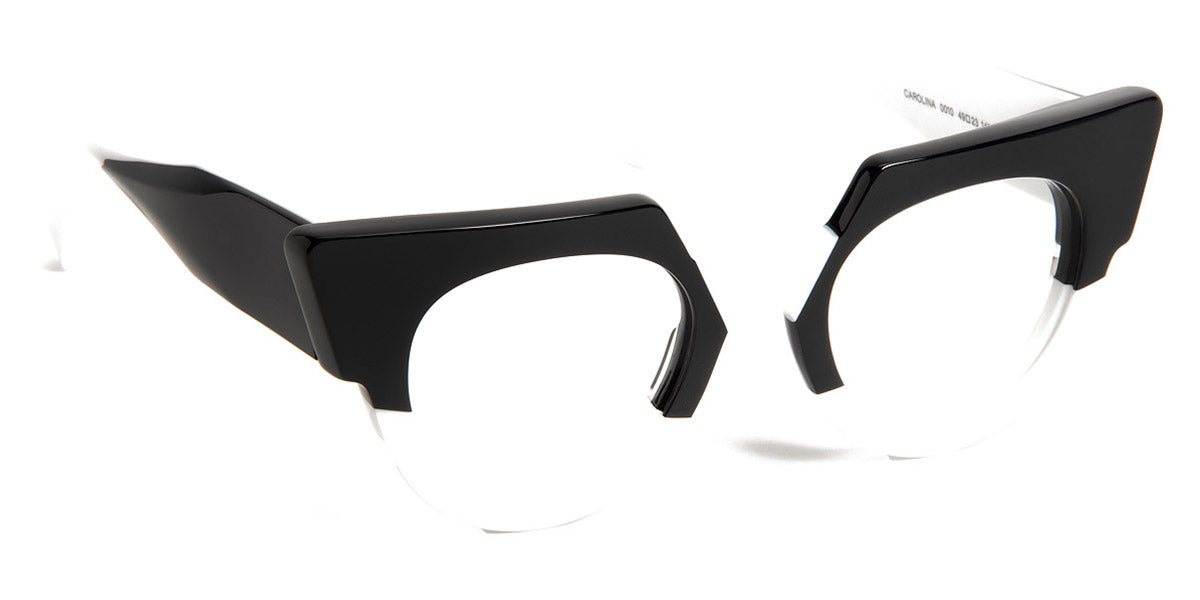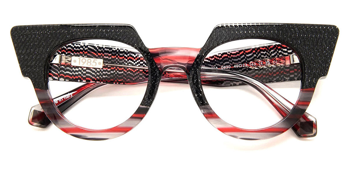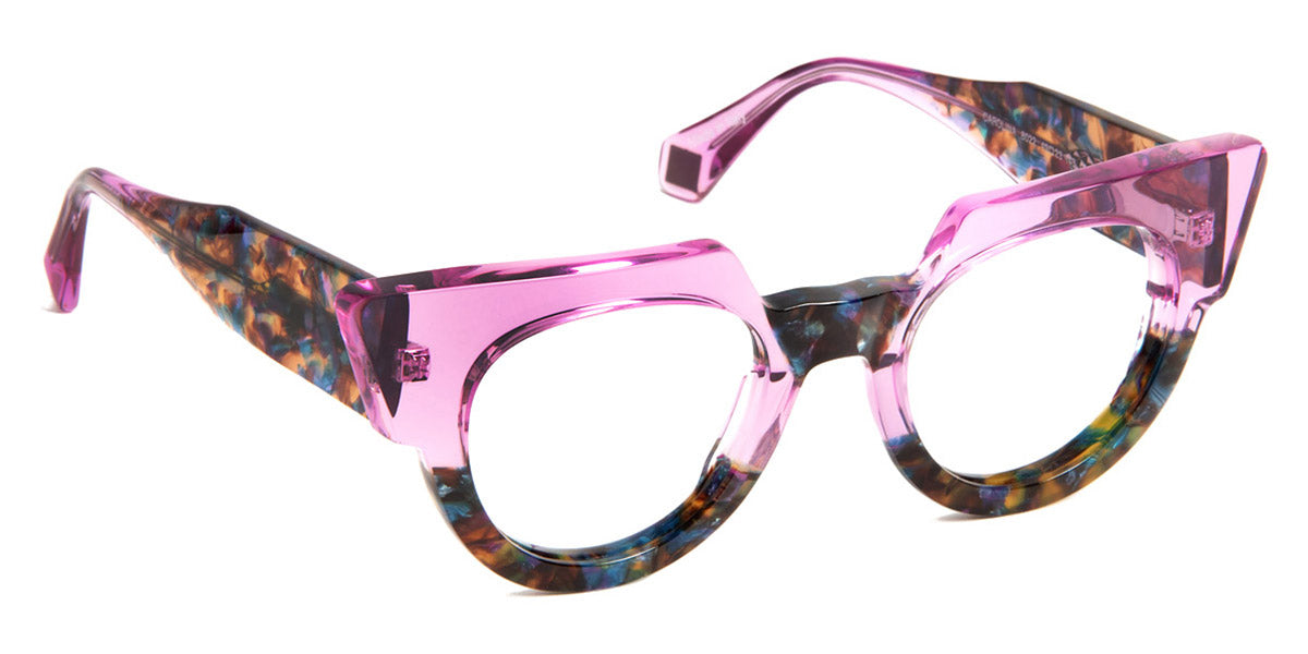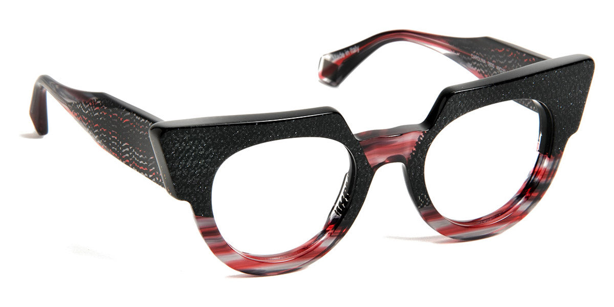 Carolina Eyeglasses by J.F. Rey. Color: 0010 Black/White, 0830 Black Geometric/Red Striped, 8022 Pink/Blue Confetti, Size: 49-23-143.