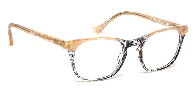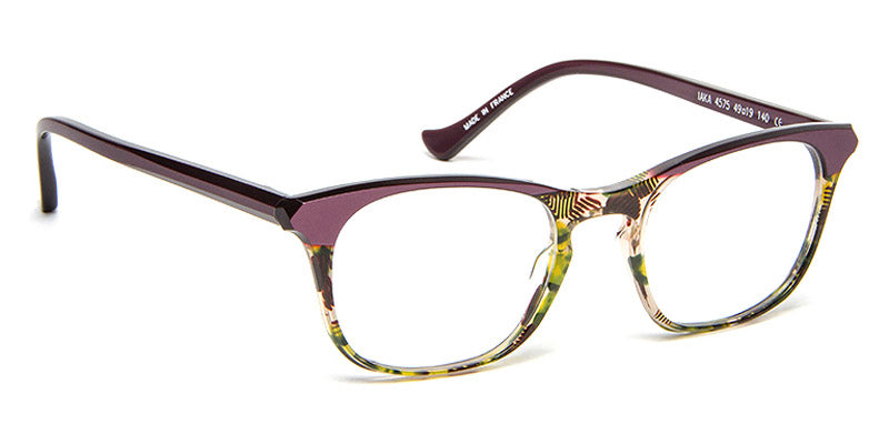 Iaka Eyeglasses by J.F. Rey. Color: 0055 Black Goldleaf/Gold Jelly, 2220 Blue Demi/Cobalt Blue, 4575 Spotlight Olive/Plum, 7200 Shell Purple/Black Laces, 9970 Demi/Purple, Size: 49-19-140. Meet the Iaka unisex eyeglasses designed by J. F. Rey. These glasses boast a striking square shape design, highlighted by a full-rim acetate frame. Offering a range of choices, this model comes in five distinct color combinations and sizes. The acetate frame is meticulously crafted using collages of various acetates, resulting in a truly unique interplay of colors. The finishing touches on its bevels and mirrored surfaces evoke the opulence of high-end glasses and vases. Both the tenons and the temples are carefully molded, contributing to the frame's exquisite reflections. J. F. Rey, the French brand, skillfully blends seemingly disparate characteristics, achieving a state of effortless flawlessness. Their eyeglasses embody traits of conservatism, boldness, and flair, all the while maintaining an unassuming charm. While their appearance may appear modest, wearing J. F. Rey frames demands a touch of charisma and inner strength, as the brand's distinctiveness is unmatched and inimitable. Only time-tested materials are utilized in the production of their eyeglasses, reflecting a commitment to quality and longevity.