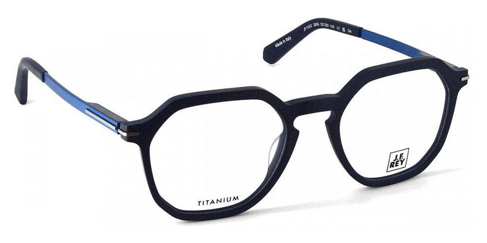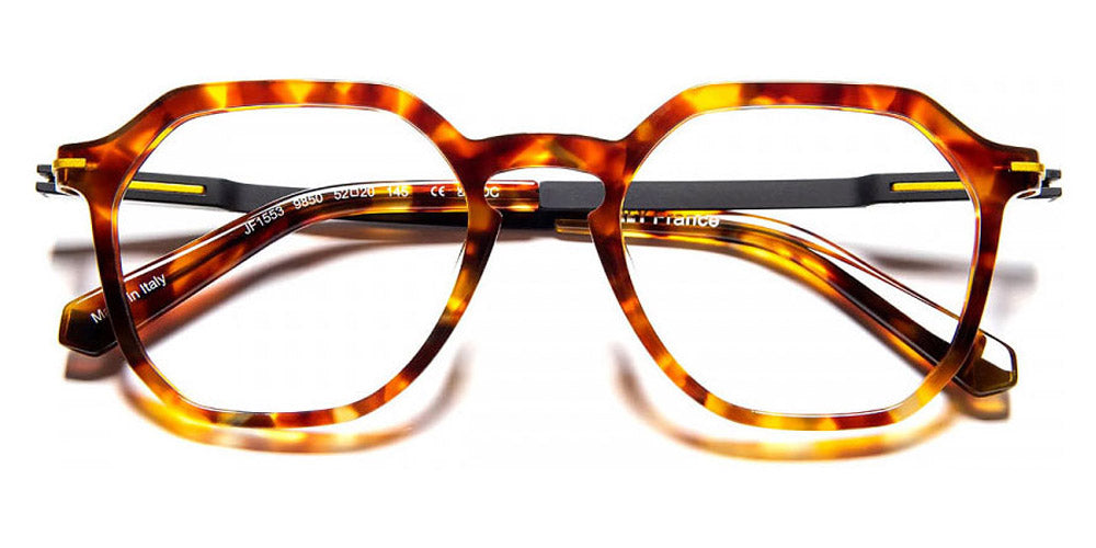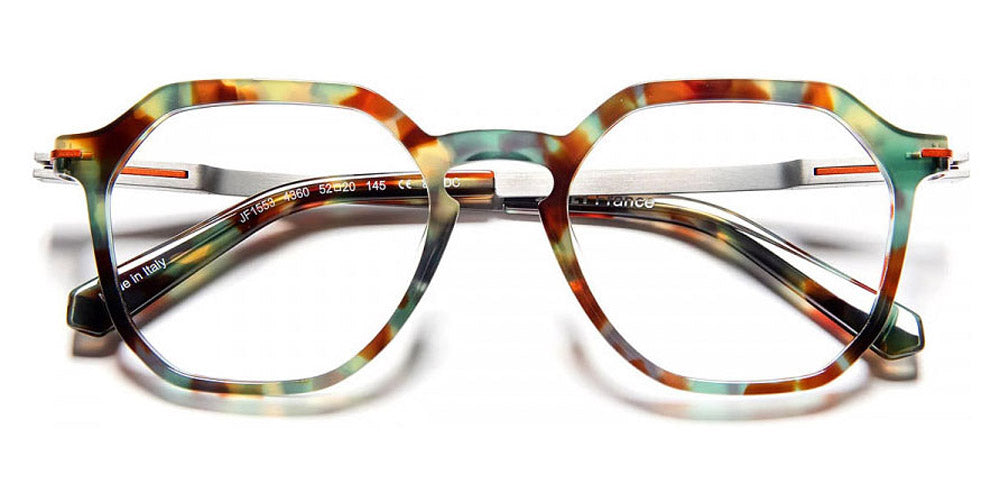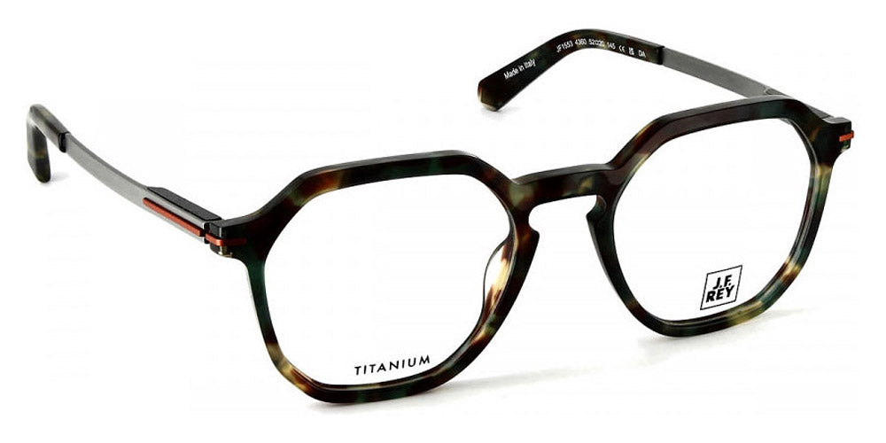 JF1553 Eyeglasses by J.F. Rey. Color: 0000 Black, 0238 Gray/Red, 2855 Blue, 4360 Green Camouflage/Orange, 9850 Demi/Black, Size: 52-20-145.