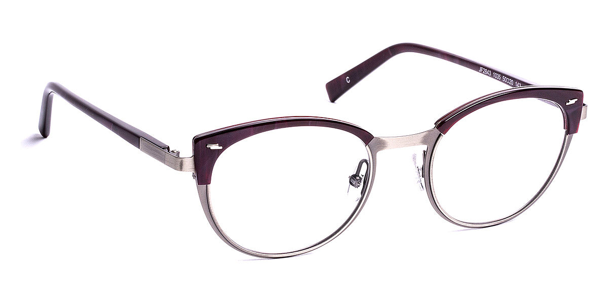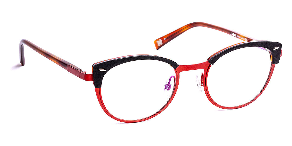 JF2843 Eyeglasses by J.F. Rey. Color: 1035 Burgundy/Brushed Silver, 2520 Dark Blue/Blue, 3000 Black Leather/Demi/Metal Red, 5090 Brown Leather/Ivory/Metal Brushed Gold, Size: 50-20-143. Step into the world of fashionable eyewear with the J.F. Rey JF2843. These frames are more than just a pair of glasses; they are a statement piece that combines style and innovation. Crafted with precision and attention to detail, these frames are a true work of art. Each element, from the textures to the colors and patterns, is carefully curated to match your unique style preferences. With J.F.Rey, you'll be turning heads wherever you go. But it's not just about looks - these frames are designed for comfort too. The clever combination of metal and acetate ensures a sturdy yet lightweight frame that feels amazing on your face. Every component is meticulously designed to fit together seamlessly, giving you a frame that is not only stunning but also built to last. Embrace fashion and functionality in one beautiful package - because you deserve nothing less than the best.