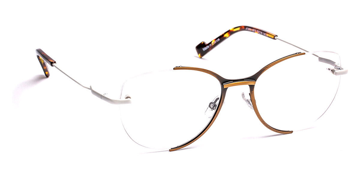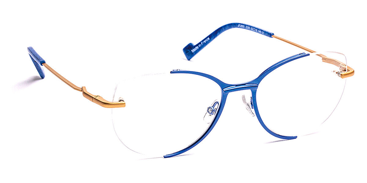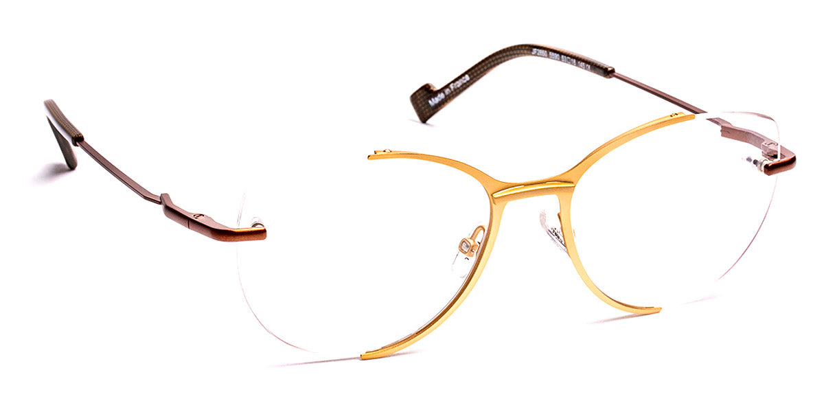 JF2850 Eyeglasses by J.F. Rey. Color: 2055 Blue/Pink Gold, 5590 Satined Pink Gold/Hot Brown, 5610 Patined Gold/White, 7049 Purple/Emeraude, Size: 53-18-145. Prepare to be absolutely dazzled by the sheer brilliance of J.F. Rey JF2850 metal eyeglasses! These stunning almost rimless spectacles are a perfect fusion of style and durability, crafted with meticulous precision and adorned with high-quality metal frames. With their modern elegance, they have the power to instantly elevate your look to new heights. The unique cat-eye shape of the JF2850 effortlessly complements every individual, making it an essential accessory for all fashion enthusiasts. But don't be fooled by their striking appearance – these glasses are built to stand the test of time! Designed to endure the demands of everyday wear and tear, they guarantee exceptional quality that will last you for years on end.