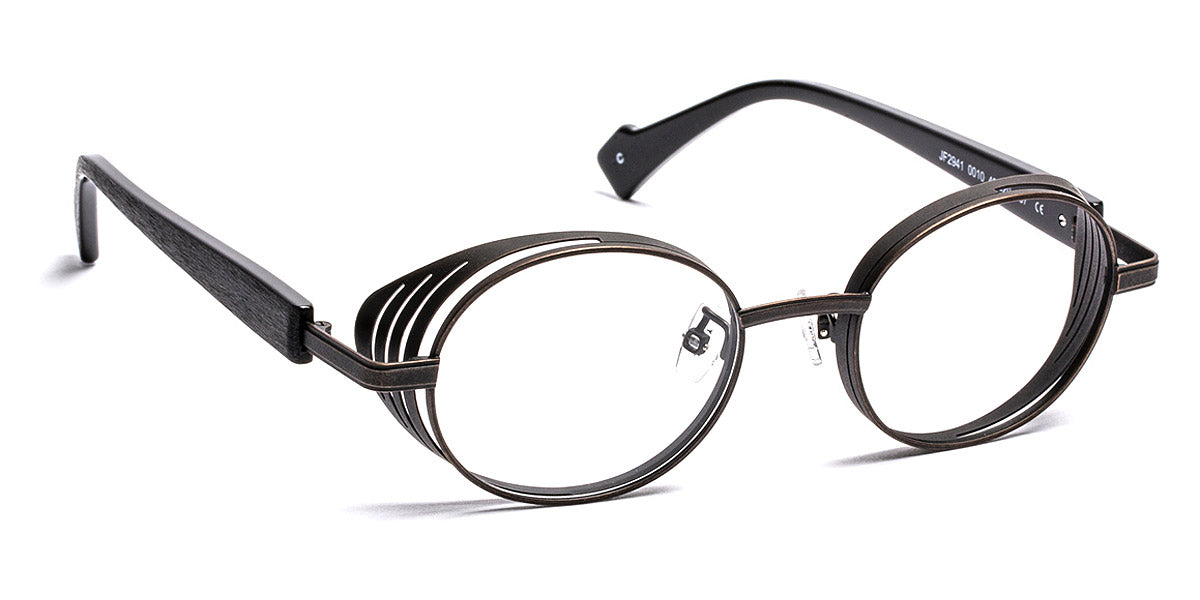 JF2941 Eyeglasses by J.F. Rey. Color: 0010 Antic Gunmetal/Scrached Black, 6360 Antic Copper/Bronze, Size: 49-20-137. Step up your eyewear game with the JF2941 from J.F.Rey! These glasses aren't just about clear vision, they're about making a statement. With a stainless steel frame and bold acetate temples, you'll turn heads wherever you go. The unique design ensures a comfortable fit that lasts all day, so you can rock these glasses in style without any discomfort. The captivating graphic lines accentuate the volume and unique contours of this frame, while the vibrant color combination adds a touch of flair to your look. Get ready for compliments on your fabulous shades!
