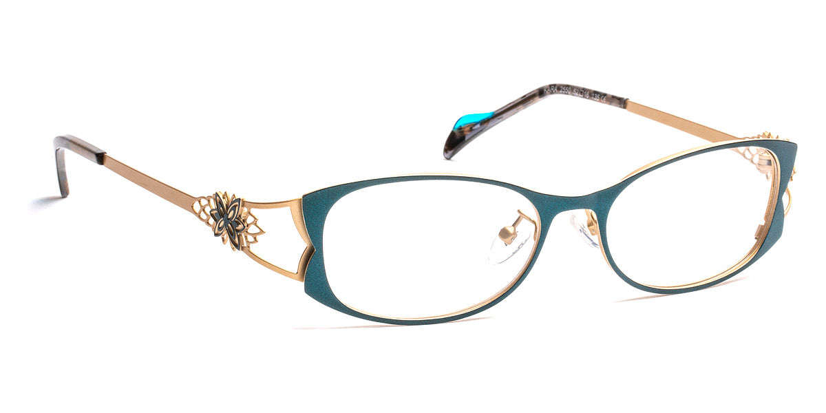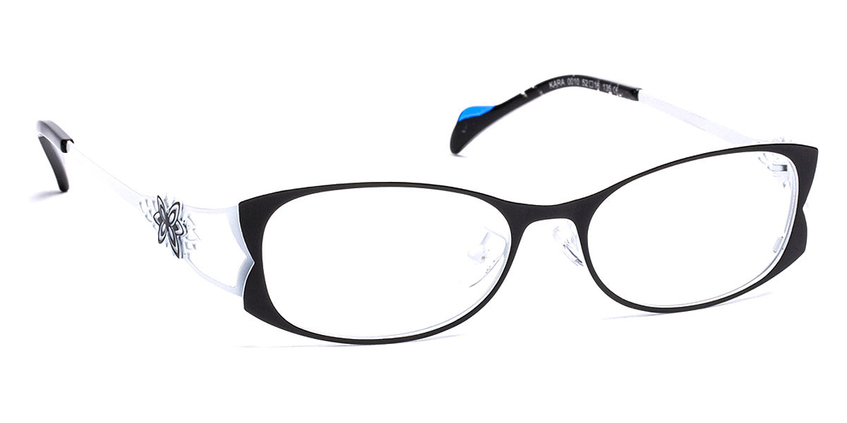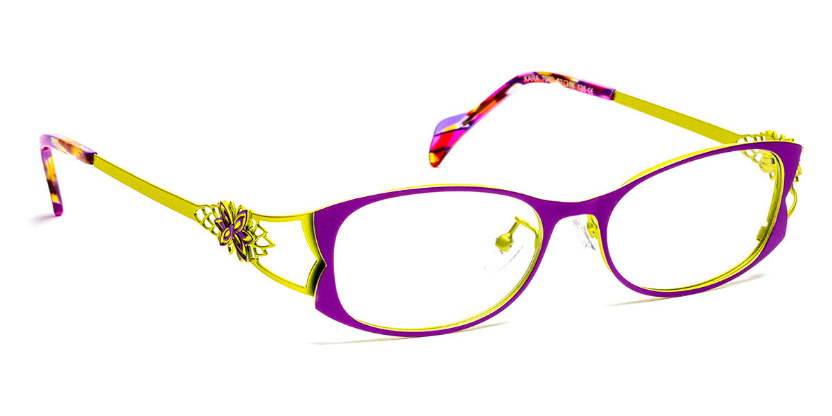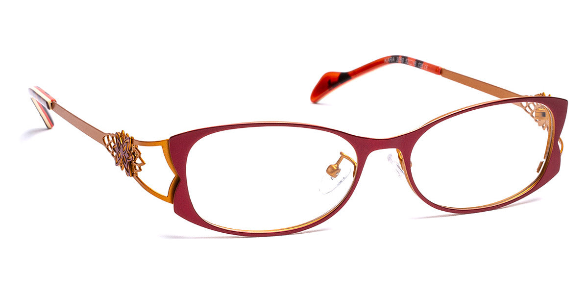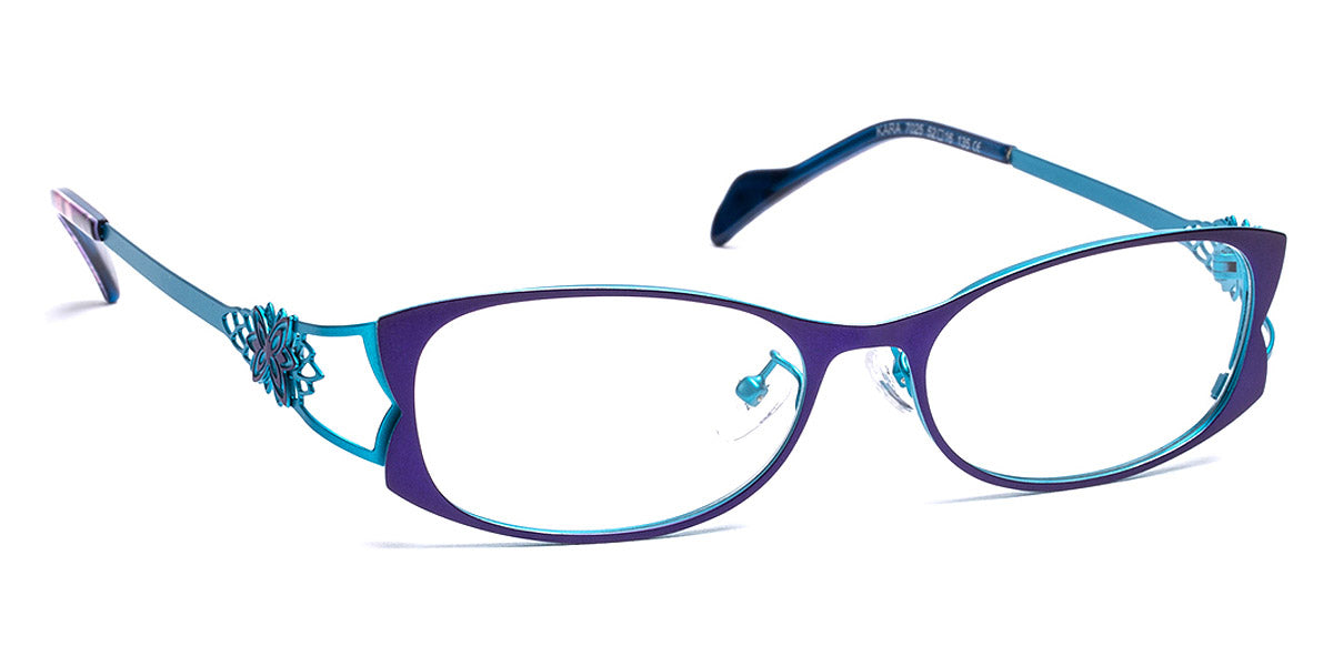 Kara Eyeglasses by J.F. Rey. Color: 0010 Black/White, 2550 Blue Duck/Satin Gold, 3060 Red/Copper, 7025 Purple/Turquoise, 7040 Purple/Anis, Size: 52-16-135. Meet your inner trendsetter with the J. F. Rey Kara eyeglasses. These frames feature a bold and geometric design, making a strong statement that sets you apart from the crowd. The fusion of vibrant colors and sleek lines creates a modern and edgy aesthetic. Whether you're navigating the urban jungle or attending a social event, Kara glasses are the perfect choice for those who dare to be different.
