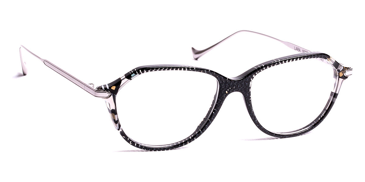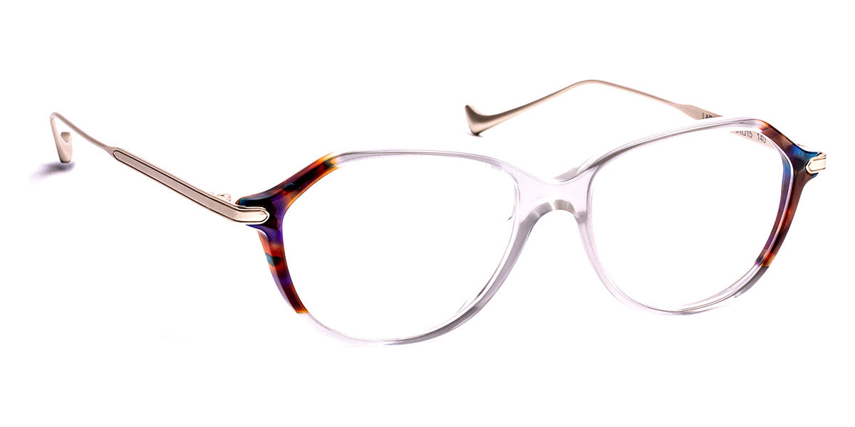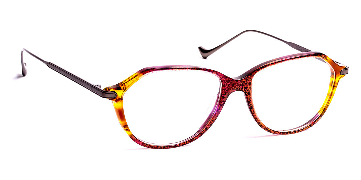Lara Eyeglasses by J.F. Rey. Color: 0025 Black Devil/Blue/Light Brown Graphic, 4570 Khaki Iridescent/Bali Multicolor, 7550 Sparkling Purple Demi/Blond Demi, 8000 Pink Evanescence/Iridescent Pink, Size: 51-15-140. Dive into the world of sophistication with the J. F. Rey Lara glasses, a fusion of modern design and timeless elegance. The cat-eye silhouette and sleek lines create a look that effortlessly transitions from professional settings to social occasions. Lara glasses are a versatile accessory, complementing your style with poise and adding a touch of glamour to every ensemble.