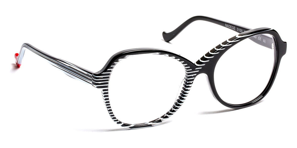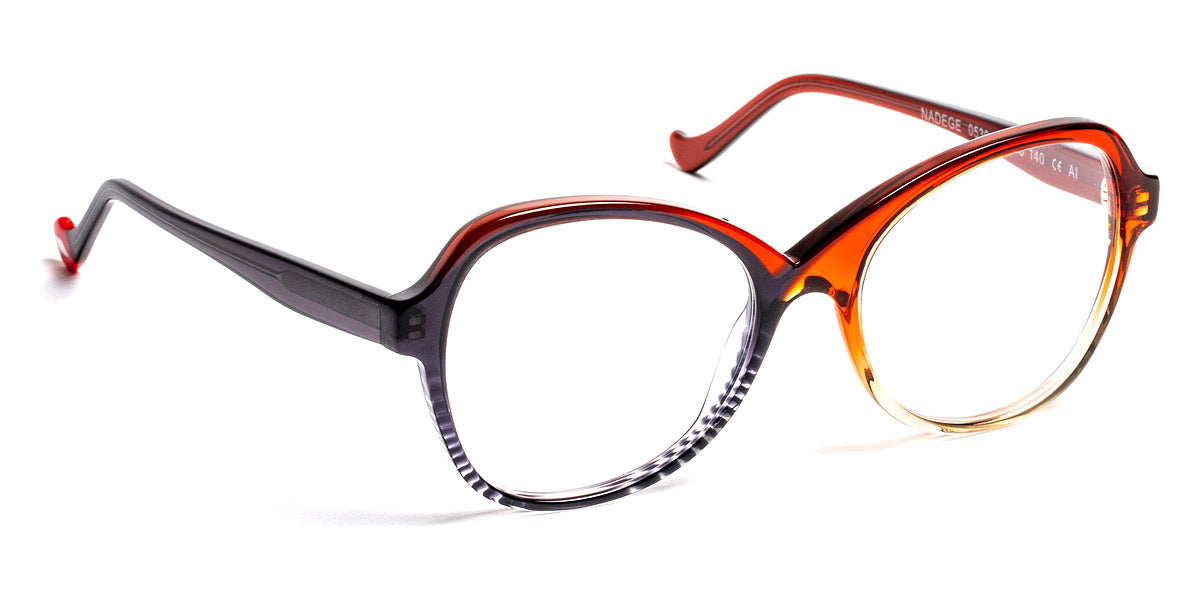 Nadege Eyeglasses by J.F. Rey. Color: 0100 Stripes Black/White, 0530 Stripes Black/Gradient Red, 3090 Red/Brown Lace, 8050 Pink/Gradient Yellow, Size: 53-18-140. Embrace the allure of the Nadege eyeglasses by J. F. Rey. These frames are a fusion of modern design and classic sophistication, offering a versatile accessory for the contemporary fashion enthusiast. Nadege is a visual masterpiece, featuring a silhouette that exudes confidence and style. Crafted with precision and a touch of avant-garde charm, these glasses are a testament to the brand's commitment to both innovation and timeless elegance.