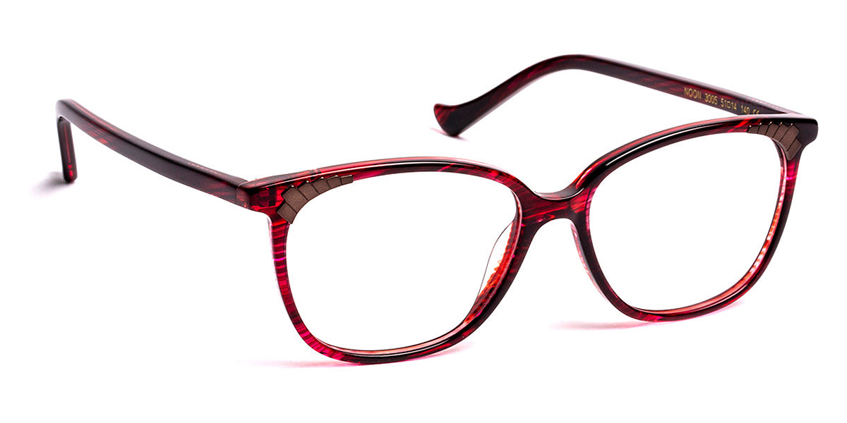 Noon Eyeglasses by J.F. Rey. Color: 3005 Red/Brown, 4970 Green/Purple, 9585 Demi/Pink, Size: 51-14-140. Capture the essence of timeless beauty with the J. F. Rey Noon glasses. These frames are a harmonious blend of classic design and contemporary flair. The subtle curves and refined details add a touch of sophistication to your look, making Noon glasses a versatile accessory for any occasion. Elevate your style with eyewear that transcends trends and stands the test of time.