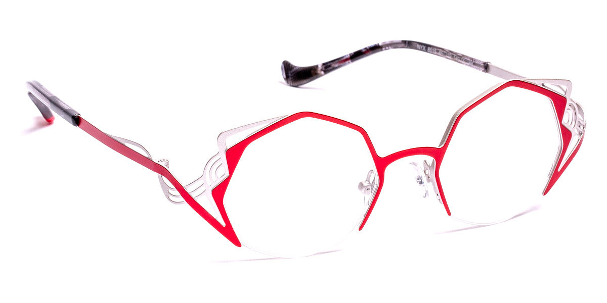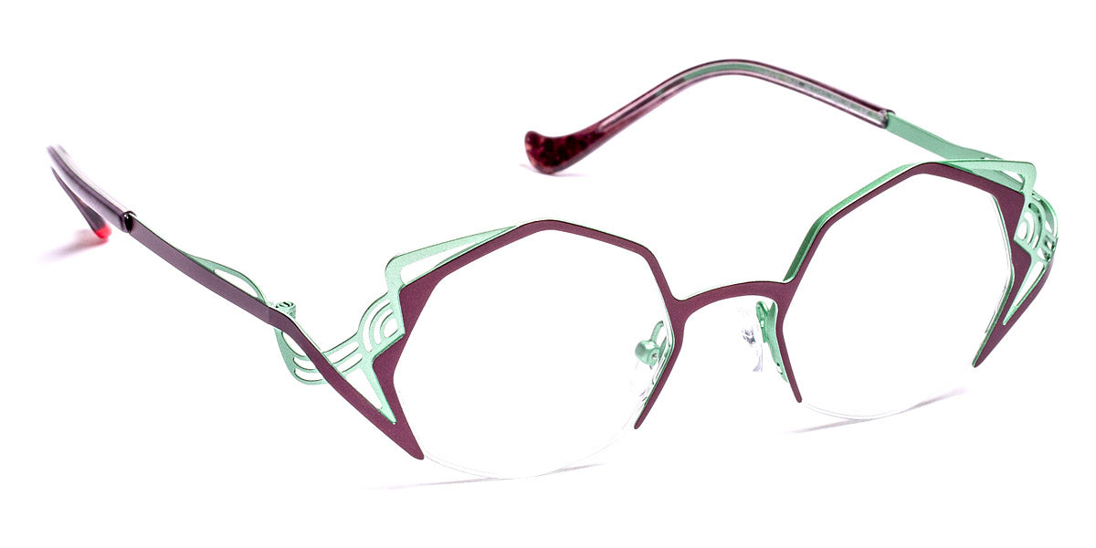 Nyx Eyeglasses by J.F. Rey. Color: 7045 Purple/Jade, 8515 Fuchsia/Silver, Size: 45-19-140. Unveil an avant-garde elegance with the Nyx glasses by J. F. Rey. This model seamlessly blends modern aesthetics with a touch of celestial allure. The frame's ethereal curves and shimmering metallic accents evoke the mystique of the night sky, making Nyx a statement piece for those who appreciate distinctive style and cosmic inspiration.