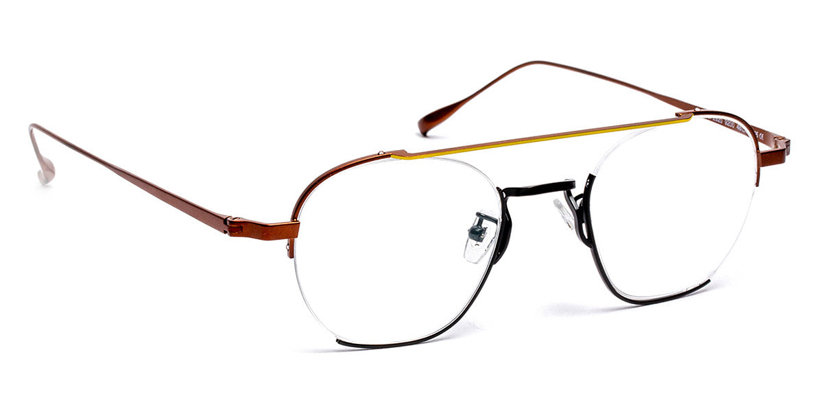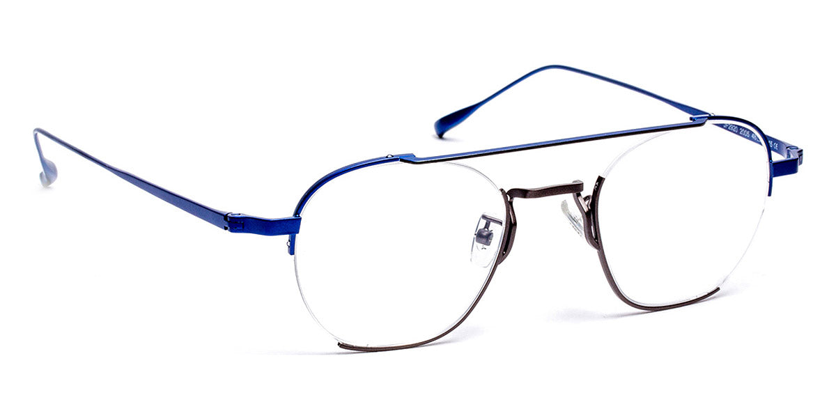 JF2920 Eyeglasses by J.F. Rey. Color: 2005 Navy Blue/Gunmetal/Black, 4325 Khaki/Blue, 9200 Brown/Black/Yellow, Size: 48-23-145. Introducing the JF2920 eyeglasses - where style meets innovation! These almost "invisible" rimless frames are a true fashion statement, designed with a creative approach that highlights their balanced deconstruction and vibrant colors. Made with precision and care in France, these metal frames not only provide a strong and distinctive personality but also ensure durability and comfort. Step up your eyewear game with JF2920 eyeglasses and experience the perfect blend of style and craftsmanship.