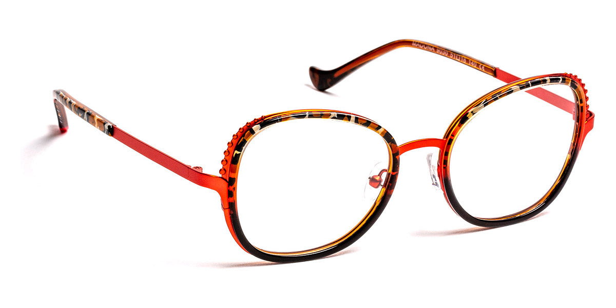 Madona Eyeglasses by J.F. Rey. Color: 0505 Beautiful Black/Satin Black/Gold, 2050 Blue/Light Gold, 3070 Red/Khaki/Silver, 8035 Pink/Burgundy, 9030 Panther Red, Size: 51-18-140. Channel the spirit of glamour and sophistication with the J. F. Rey Madona glasses, a tribute to timeless beauty. The cat-eye frames exude a sense of vintage allure, while the luxurious materials and intricate detailing on the temples add a touch of modern elegance. Madona glasses are a perfect accessory for those who appreciate the fusion of classic and contemporary design. Embrace the allure of Madona and let your style transcend the ages.