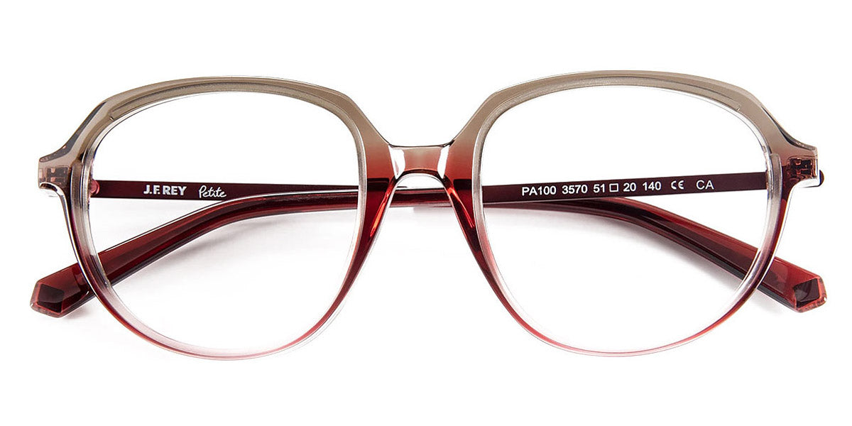 PA100 Eyeglasses by J.F. Rey. Color: 1550 Flower Beige/Gold/White, 2509 Black Lace/Blue/Shiny Gunmetal, 3570 Gradient Burgundy/Black, 6545 Orange/Green/Black, Size: 51-20-140. Experience the perfect union of fashion and functionality with the PA100 by J. F. Rey. This model is a testament to the brand's commitment to innovative design, featuring a sleek and ergonomic frame that prioritizes comfort without compromising on style. The PA100 seamlessly blends into your daily life, whether you're at work or leisure. Crafted with meticulous attention to detail, these glasses are a versatile addition to your collection, enhancing your look with a touch of contemporary charm. Elevate your eyewear experience with the PA100, where form meets function in perfect harmony.