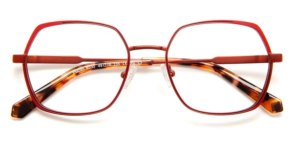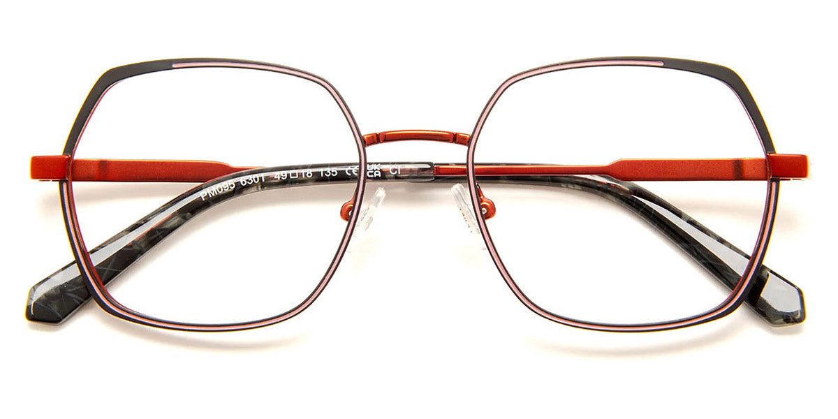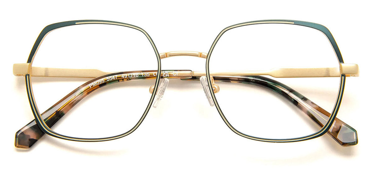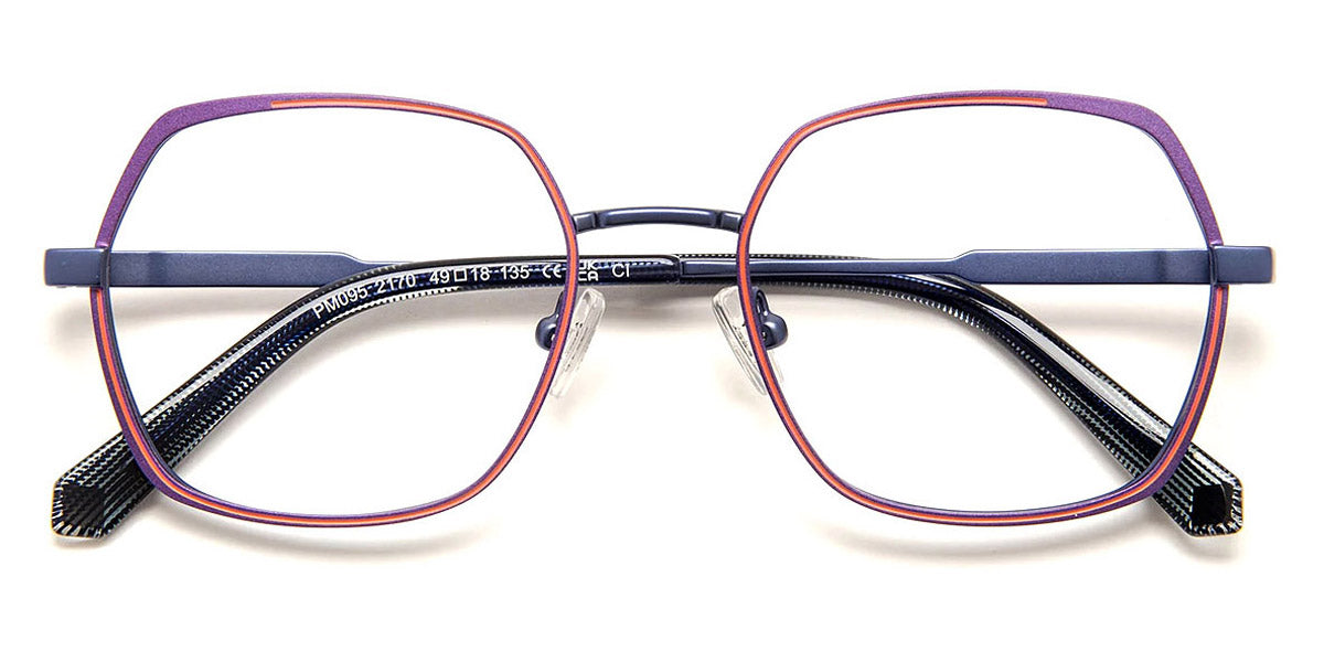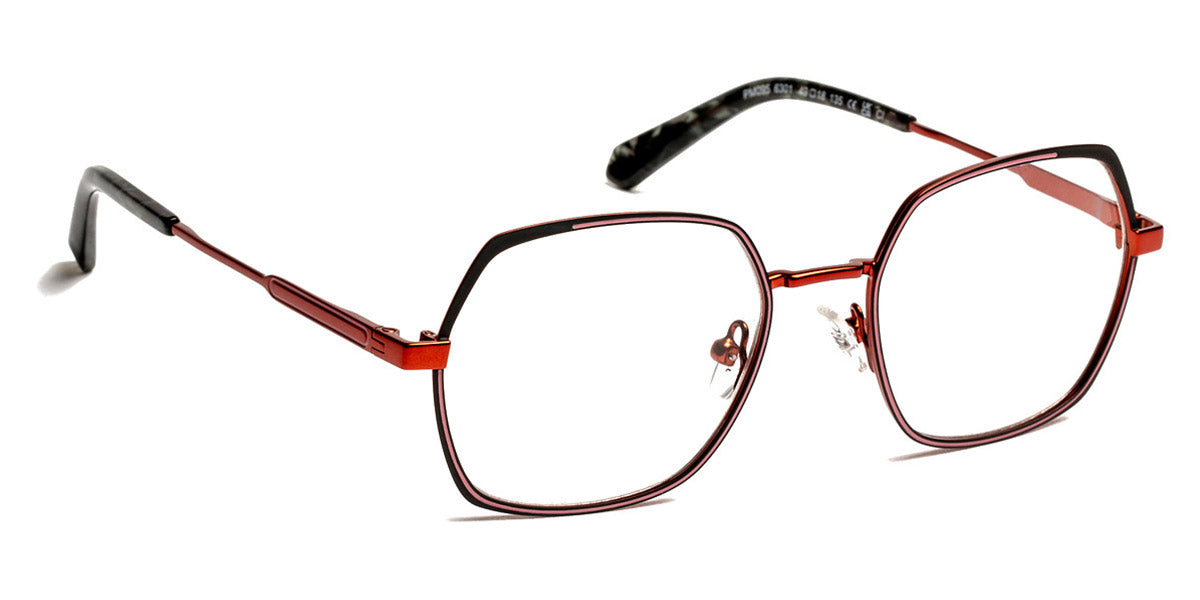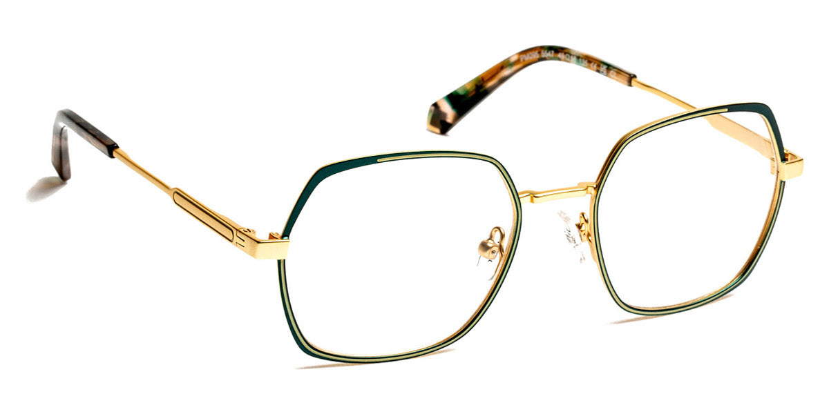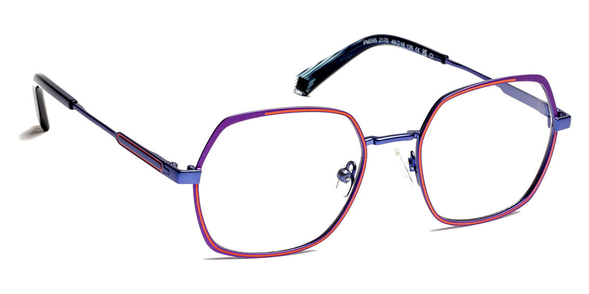 PM095 Eyeglasses by J.F. Rey. Color: 2170 Blue/Purple/Orange, 5547 Gold/Duck Green/Mastic, 6301 Copper/Black/Pink, 6330 Copper/Burgundy, Size: 49-18-135.