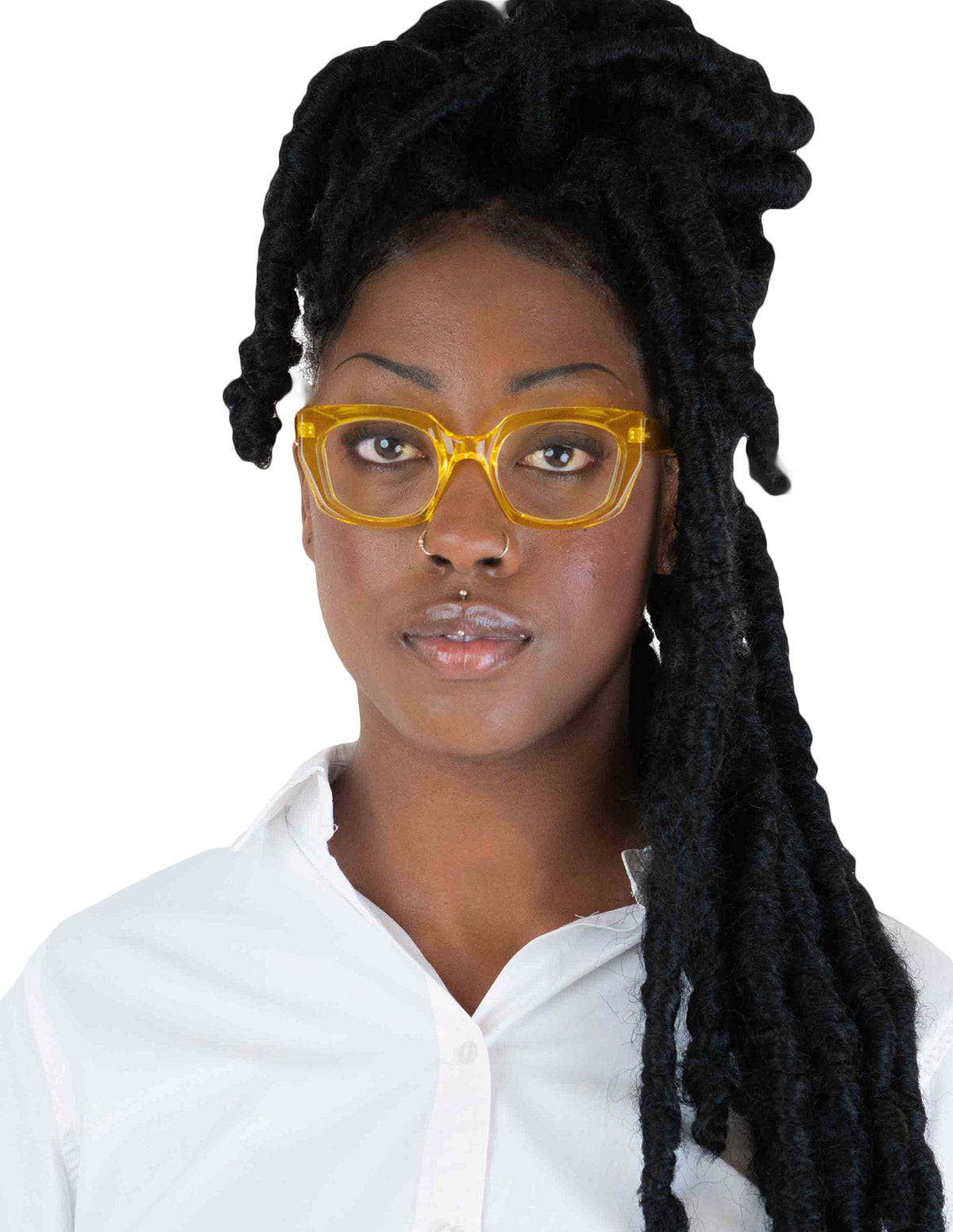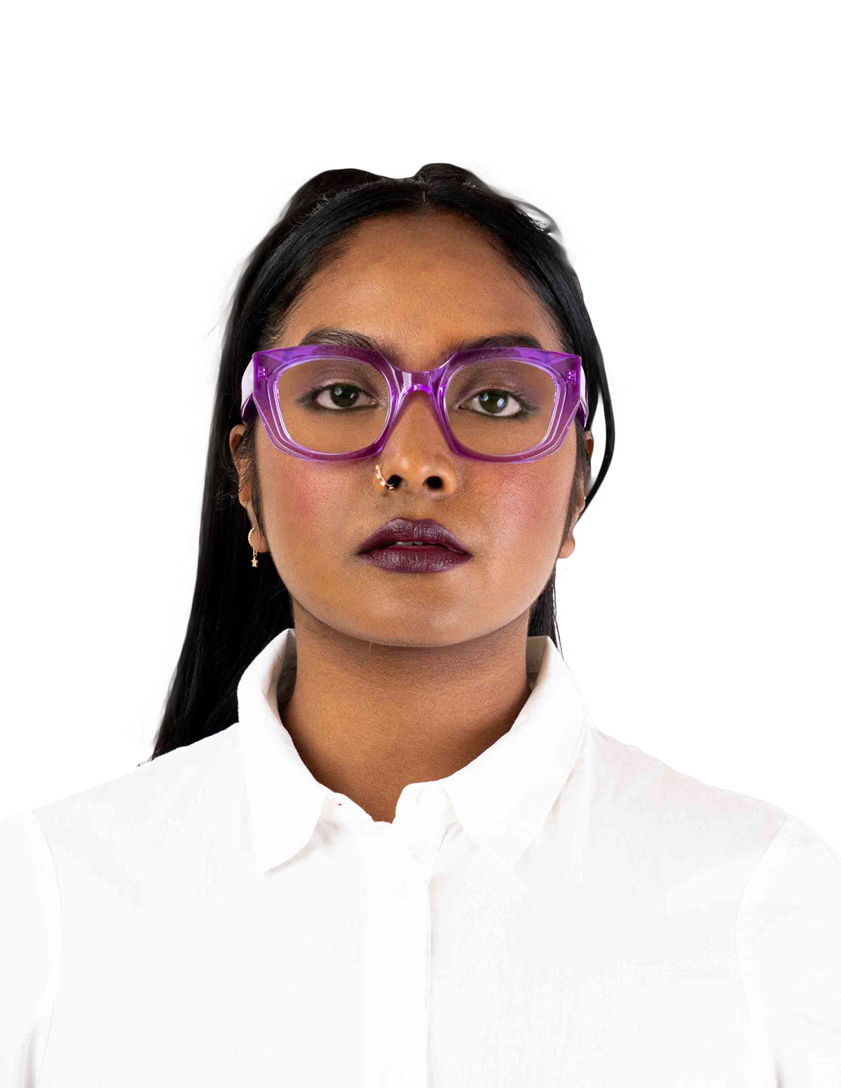 MIRIAM Eyeglasses by Kirk & Kirk. Material: Acrylic, Shape: Square, Color: Black, Blue, Bordeaux, Brown, Gray, Jade, Orange, Pink, Red, Violet, Yellow, Matte Black, Matte Crystal, Matte Vamp, Size: 50-21-143. Made from premium, lightweight acrylic, these frames offer comfort and durability. The Kirk & Kirk's MIRIAM eyeglasses showcase a graceful, round silhouette that combines timeless charm with a modern edge. Available in a range of bold and distinctive colors, the MIRIAM glasses for vision are ideal for those seeking to enhance their look with a subtle yet stylish accessory.