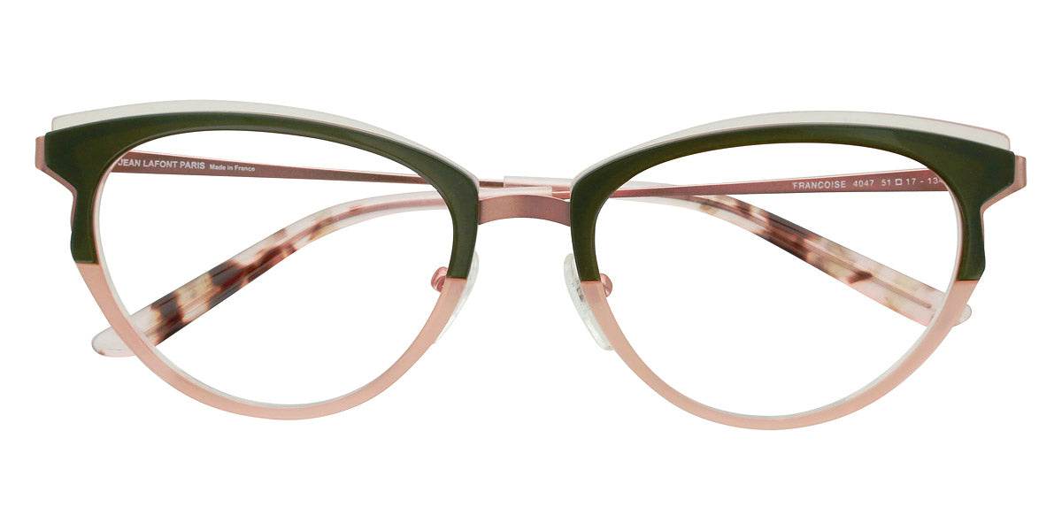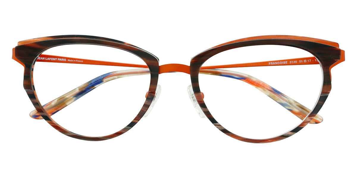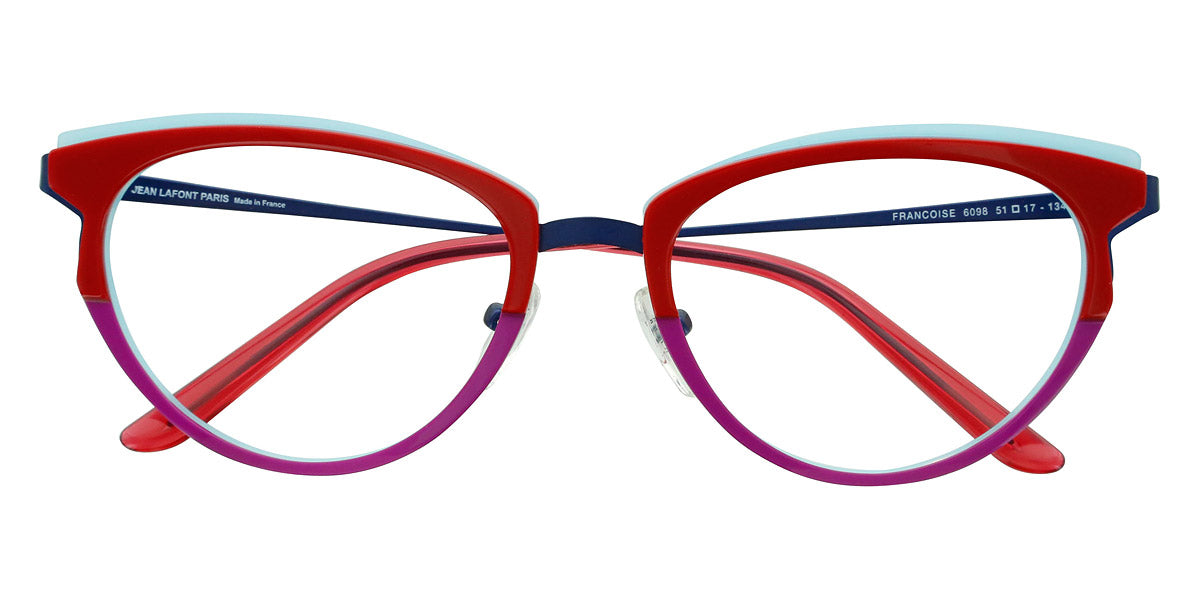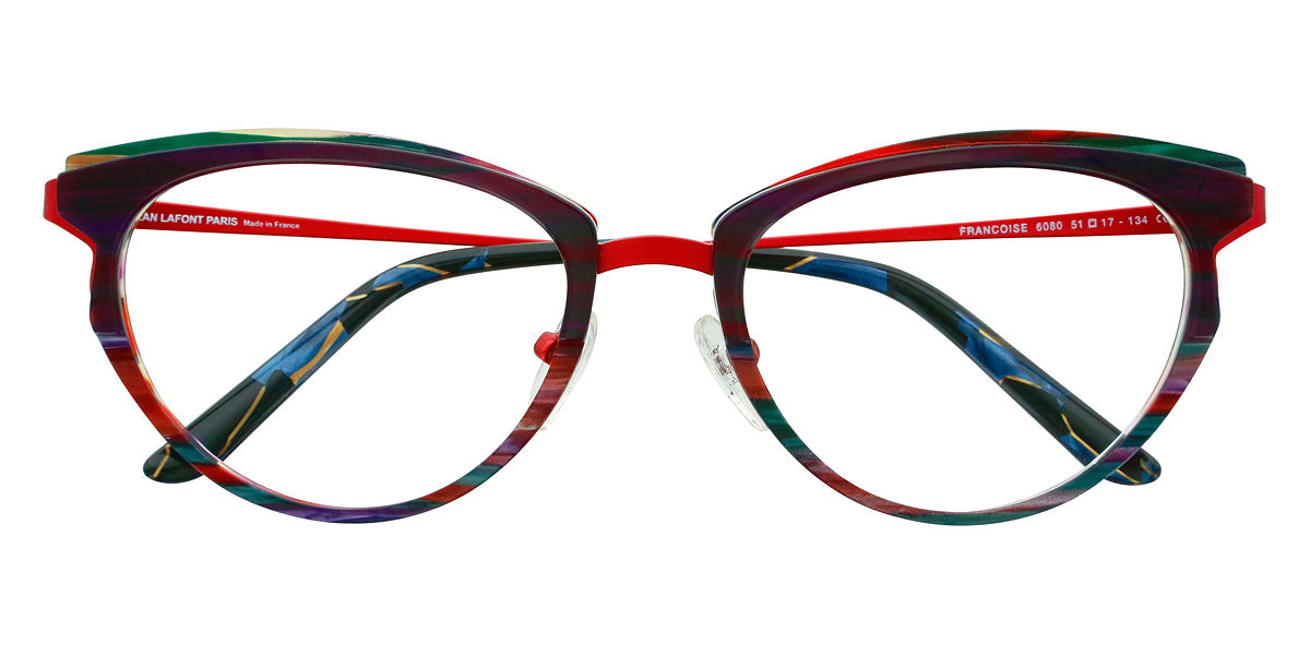 Francoise Eyeglasses by Lafont. Color: Brown 5146,Green 4047,Panther 380,Purple 6080,Purple 7115,Red 6098, Size: 51-17-134. If you are a fan of the charming and elegant Parisian style, the Lafont glasses are to your liking! By experimenting with shapes, materials and colors, the designers create eye-catching styles that will add an artistic look to any outfit. The frames feature delicate silhouettes and fascinating colorations to stand out from the rest. The process of manufacturing a pair of Lafont glasses takes 8 to 14 weeks and involves 120 to 220 successive operations, depending on the complexity of the frame. Most of these processes are manual, which makes Lafont eyewear a real work-of-art.
