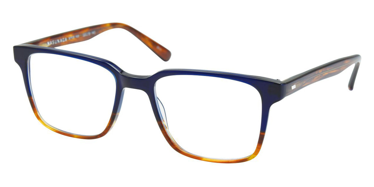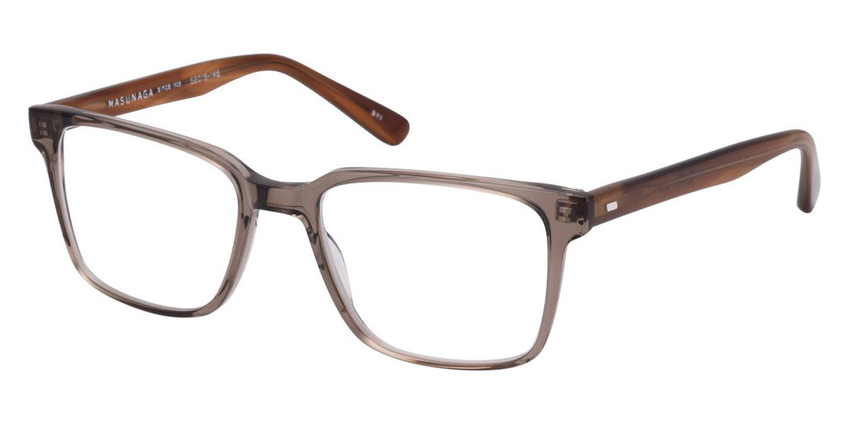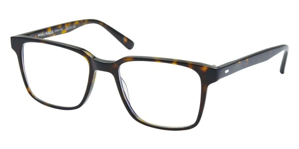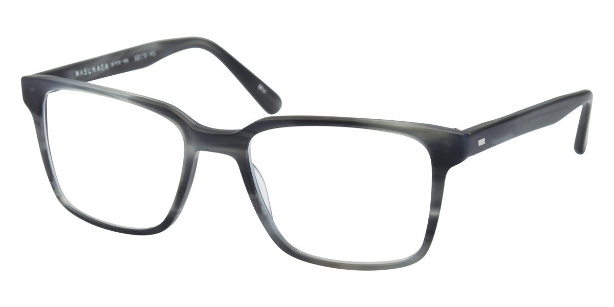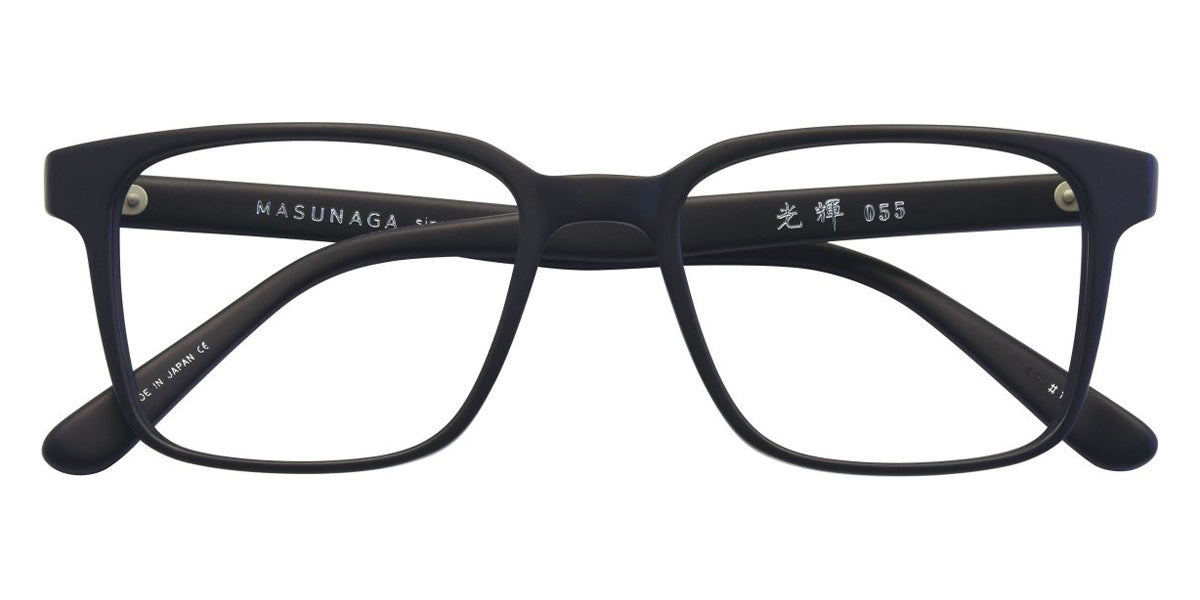 055 Eyeglasses by Masunaga. Color: 19 BK Matt, 23 DEMI, 35 BL-DEMI, 54 GRY Matt, 64 DGRY, 73 BR, Size: 52-19-145, Material: Acetate