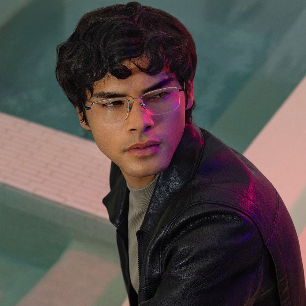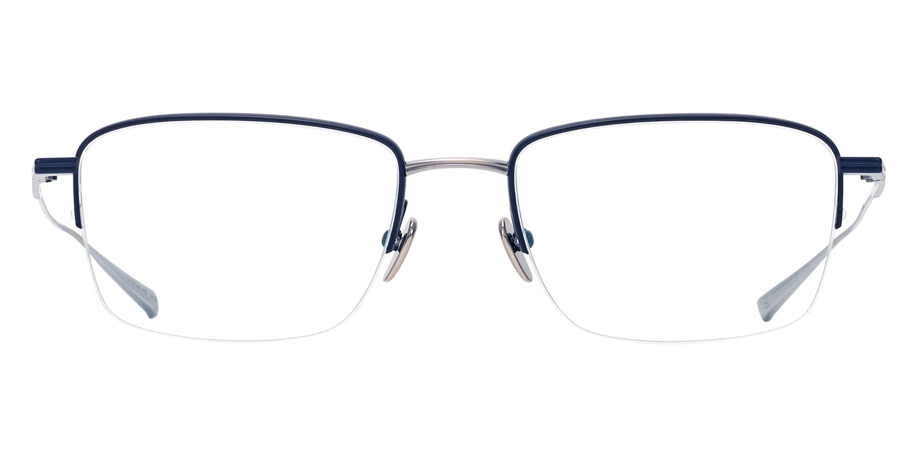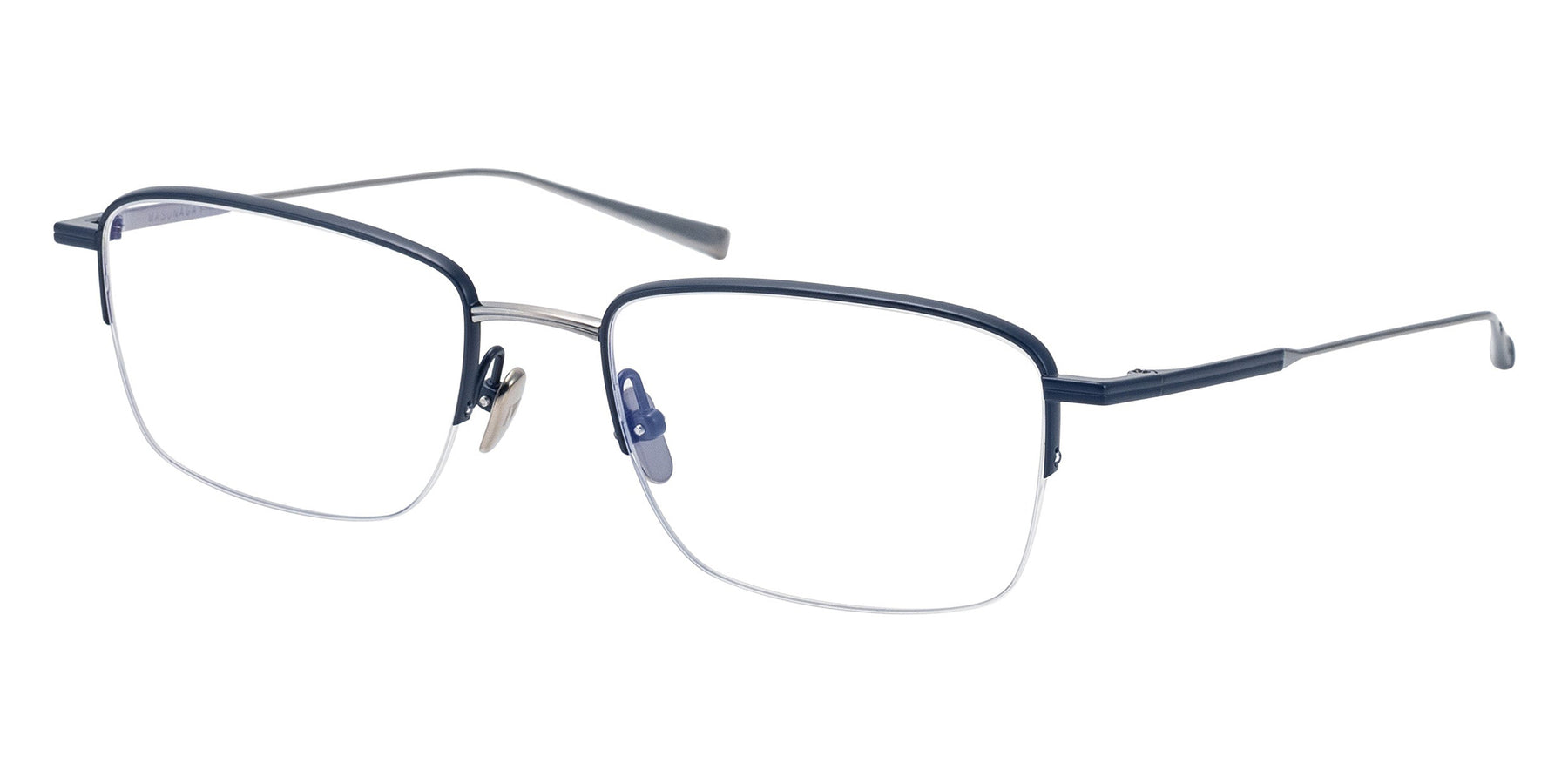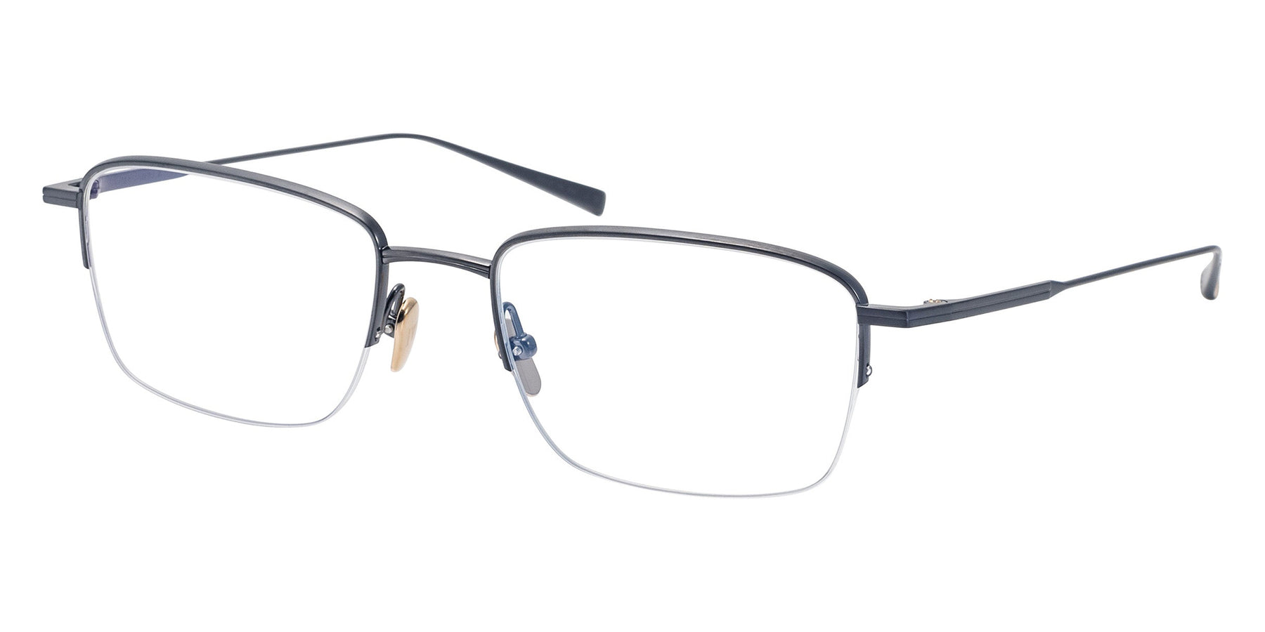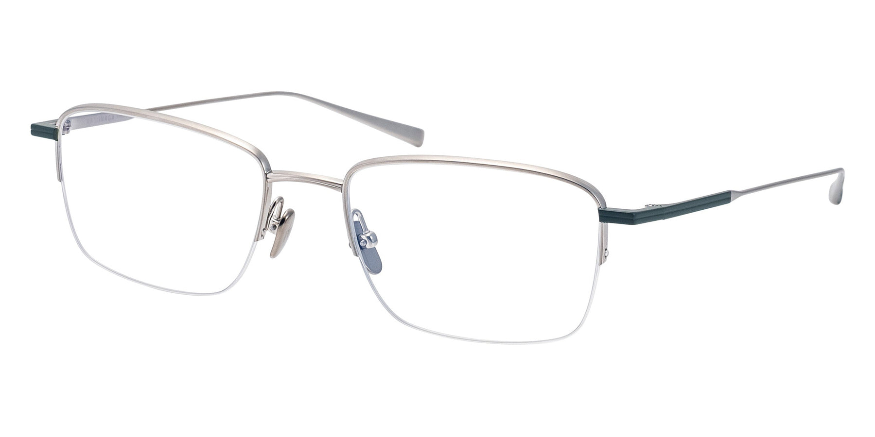 Masunaga® MIES II Eyeglasses by Masunaga®. Color: 32 Silver/Khaki, 29 Black/Gold, 15 DBL/Silver, Size: 53-19-145. Minimal and stylish half-rim frame MIESⅡ. The big size model of the ever-popular frame, MIES, will further expand the range of users. The bridge temple design has been updated to have a slimmer line. The sharp and delicate MEIS II brings out your own charm. Available in three colors, #15 is a combination of navy blue and silver, and is a color that is typical of MASUNAGA. The #32 is made of silver and is a khaki paint from the Yoroi to the temple, giving it a more comfortable finish.