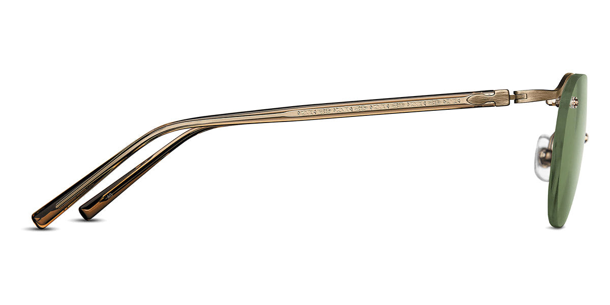M3117 Sunglasses by Matsuda. Color: Antique Gold / Sage Green, Brushed Gold / Blue Grey, Brushed Silver / Cafe Blue Gradient, Matte Black / Cafe Violet Gradient, Size: 47-21-143. Introducing the M3117 by Matsuda, an exquisite blend of simplicity and sophistication! The pantos-style lens with an aviator-inspired bar at the top and the ornate metalwork balanced with a precious metal skeleton lend a distinct duality to the design. The temples feature a unique blend of lightweight Japanese acetate body and ornate metalwork, adding to the uniqueness of the style. Not to mention the arched titanium temple bridge and floating lens design that make it even more special. All these features come together beautifully, Made in Japan!