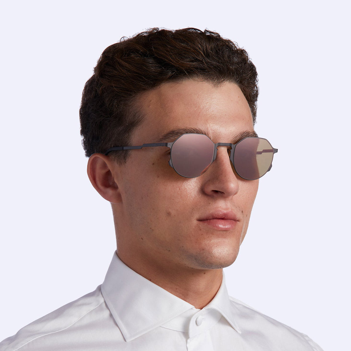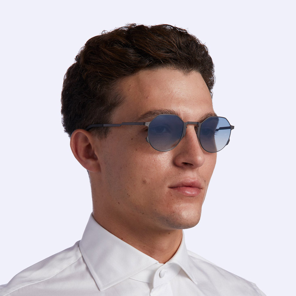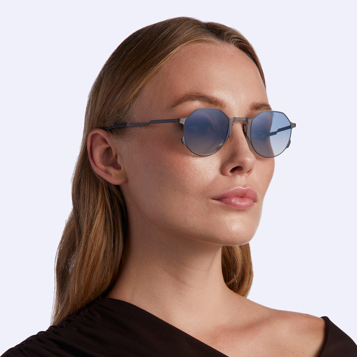 Achille Sunglasses by Movitra. Color: Gun / Light Blue, Gun Mirrored / Rose Gold, Rose Gold / Gradient Gray, Size: 49-25-145. Discover the perfect blend of innovation, style and quality with these stunning MOVITRA eyewear. Meticulously handcrafted in Italy, they embody the finest traditions of Italian craftsmanship. Each pair is designed with a keen eye for detail, featuring sculptural three-dimensional elements that add depth and visual interest. Crafted from the finest materials, the frames offer durability, comfort and a luxurious finish. Experience unparalleled innovation and design excellence with MOVITRA eyewear. Enhance your eyewear collection with a pair that not only improves your vision, but also makes a strong fashion statement.