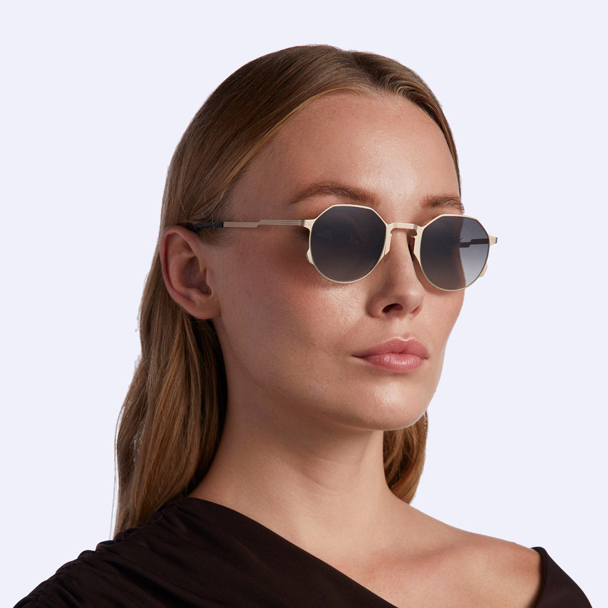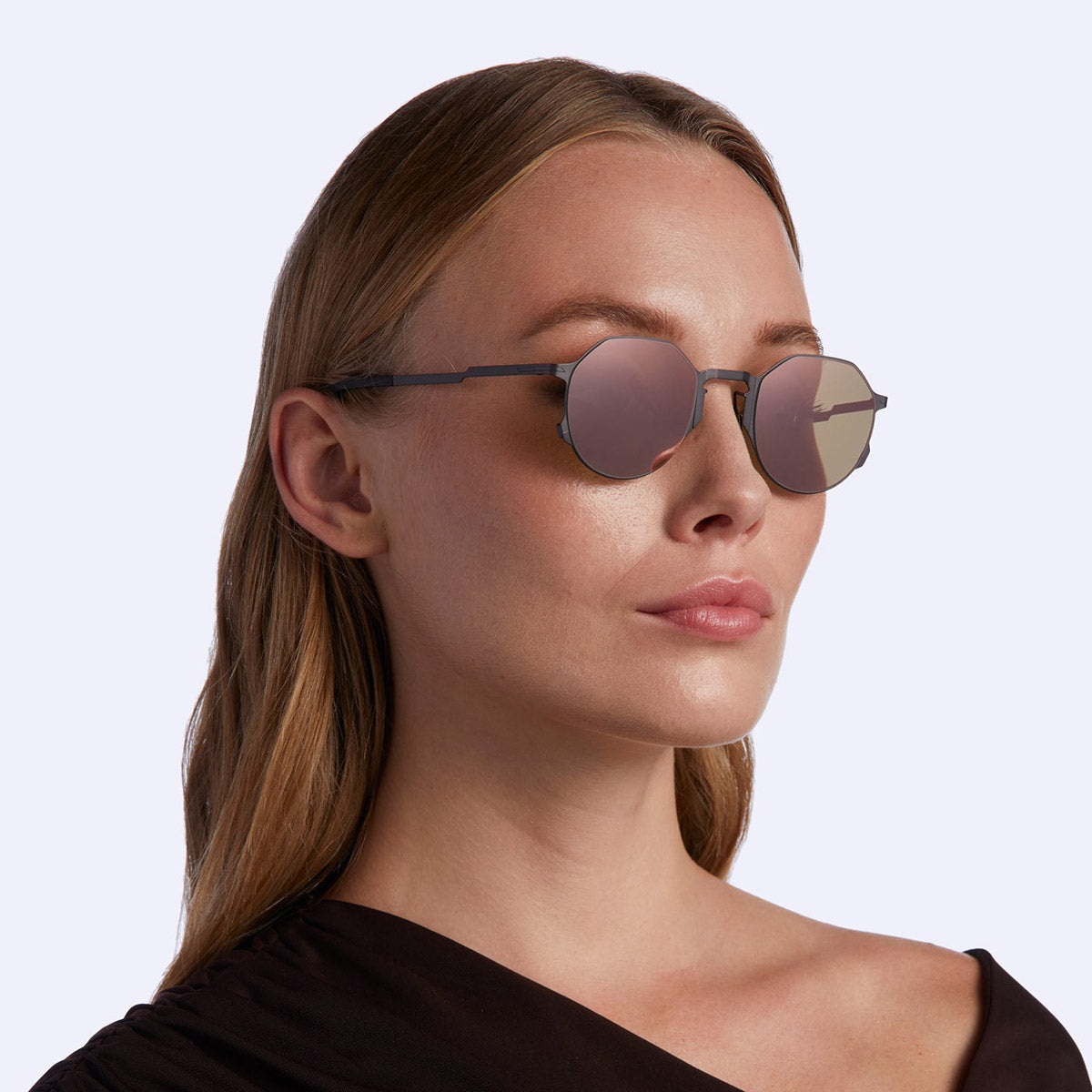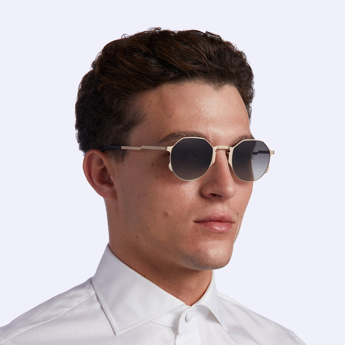 Achille Sunglasses by Movitra. Color: Gun / Light Blue, Gun Mirrored / Rose Gold, Rose Gold / Gradient Gray, Size: 49-25-145. Discover the perfect blend of innovation, style and quality with these stunning MOVITRA eyewear. Meticulously handcrafted in Italy, they embody the finest traditions of Italian craftsmanship. Each pair is designed with a keen eye for detail, featuring sculptural three-dimensional elements that add depth and visual interest. Crafted from the finest materials, the frames offer durability, comfort and a luxurious finish. Experience unparalleled innovation and design excellence with MOVITRA eyewear. Enhance your eyewear collection with a pair that not only improves your vision, but also makes a strong fashion statement.