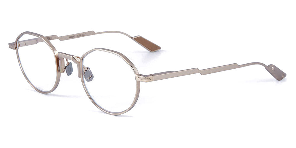 Bruno Eyeglasses by Movitra. Color: Gun, Rose Gold, Size: 48-24-145. Discover the perfect blend of innovation, style and quality with these stunning MOVITRA eyewear. Meticulously handcrafted in Italy, they embody the finest traditions of Italian craftsmanship. Each pair is designed with a keen eye for detail, featuring sculptural three-dimensional elements that add depth and visual interest. Crafted from the finest materials, the frames offer durability, comfort and a luxurious finish. Experience unparalleled innovation and design excellence with MOVITRA eyewear. Enhance your eyewear collection with a pair that not only improves your vision, but also makes a strong fashion statement.