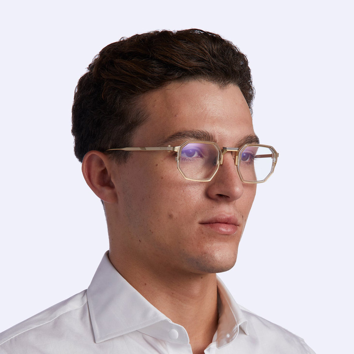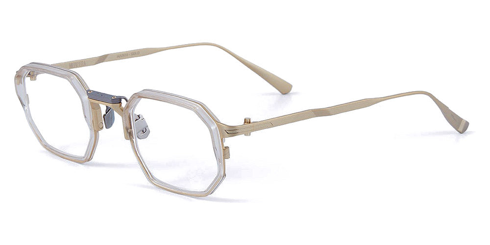 Marco Eyeglasses by Movitra. Color: Black, Gold, Crystal, Size: 48-27-145. Discover the perfect blend of innovation, style and quality with these stunning MOVITRA eyewear. Meticulously handcrafted in Italy, they embody the finest traditions of Italian craftsmanship. Each pair is designed with a keen eye for detail, featuring sculptural three-dimensional elements that add depth and visual interest. Crafted from the finest materials, the frames offer durability, comfort and a luxurious finish. Experience unparalleled innovation and design excellence with MOVITRA eyewear. Enhance your eyewear collection with a pair that not only improves your vision, but also makes a strong fashion statement.