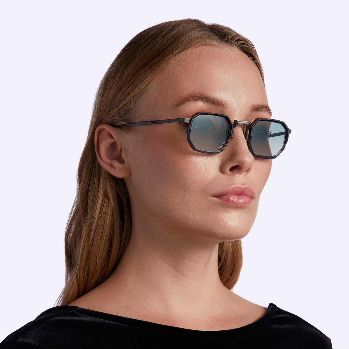 Marco Sunglasses by Movitra. Color: Black, Gold / Flash Electric Gradient Light Blue, Black / Flash Electric Gradient Green, Black Havana / Light Violet, Crystal, Size: 48-27-145. Discover the perfect blend of innovation, style and quality with these stunning MOVITRA eyewear. Meticulously handcrafted in Italy, they embody the finest traditions of Italian craftsmanship. Each pair is designed with a keen eye for detail, featuring sculptural three-dimensional elements that add depth and visual interest. Crafted from the finest materials, the frames offer durability, comfort and a luxurious finish. Experience unparalleled innovation and design excellence with MOVITRA eyewear. Enhance your eyewear collection with a pair that not only improves your vision, but also makes a strong fashion statement.