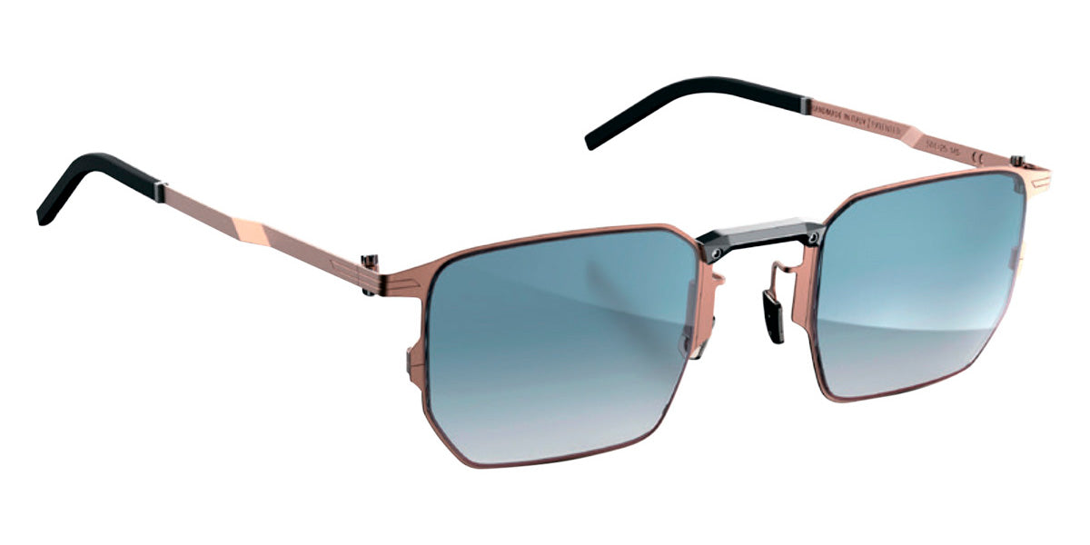 UL 02 M Sunglasses by Movitra. Color: Gun / Gray, Rose Gold / Gradient Light Blue, Size: 50-25-145. Discover the perfect blend of innovation, style and quality with these stunning MOVITRA eyewear. Meticulously handcrafted in Italy, they embody the finest traditions of Italian craftsmanship. Each pair is designed with a keen eye for detail, featuring sculptural three-dimensional elements that add depth and visual interest. Crafted from the finest materials, the frames offer durability, comfort and a luxurious finish. Experience unparalleled innovation and design excellence with MOVITRA eyewear. Enhance your eyewear collection with a pair that not only improves your vision, but also makes a strong fashion statement.