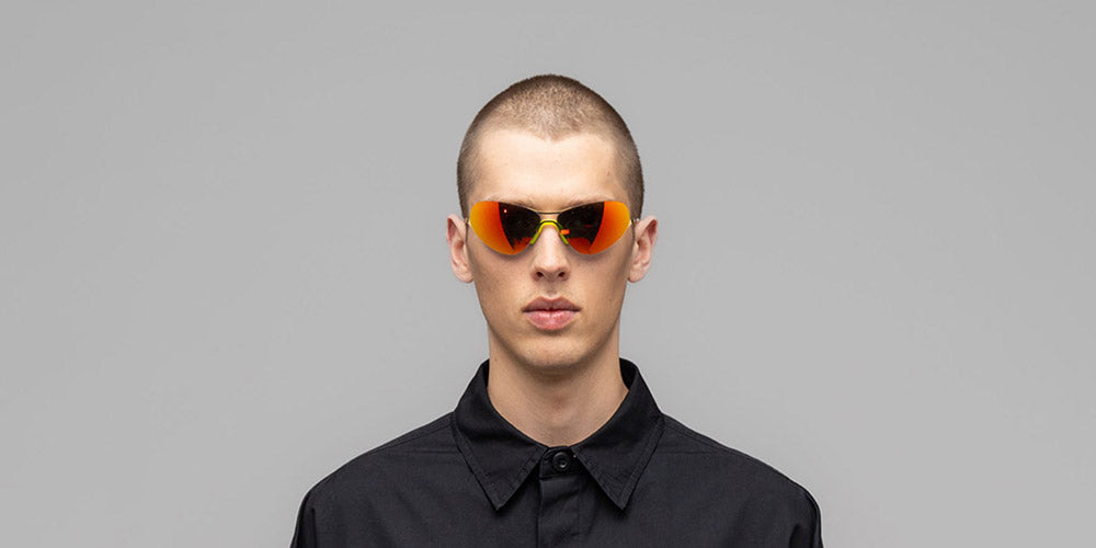 ALPINE Sunglasses by Mykita®. Color: Glossy Gold/Orange Flash, Graphite/Violet Flash, Black/Black Solid, Size: 0-16-125. MYKITA glasses feature minimalist, elegant design, lightweight construction, and sophisticated details, which makes them perfect for people with a refined taste. There are no bold logos or any other luxury codes. Instead, much attention is paid to the construction, materials and surfaces. Each frame is an unbeatable mix of new technologies and traditional craftsmanship. All glasses are meticulously made of premium-grade stainless steel, acetate or MYLON by the most experienced artisans in Berlin.