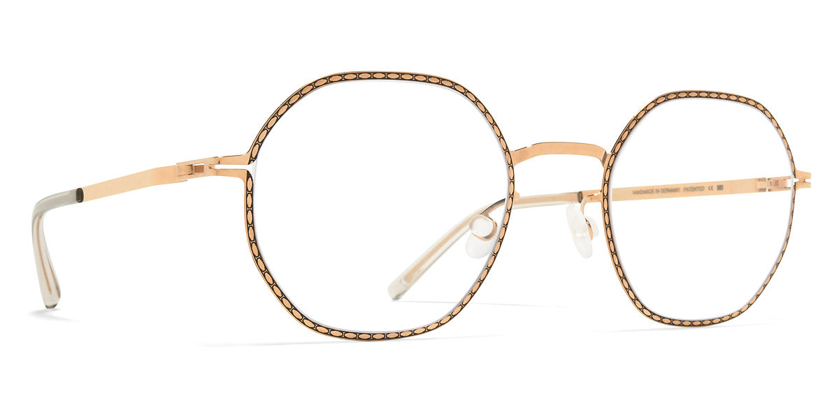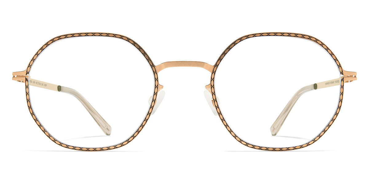 AURI Eyeglasses by Mykita®. Color: Black / Champagne Gold / Champagne Gold/Black / Purple Bronze / Shiny Silver, Size: 48-21-135. MYKITA glasses feature minimalist, elegant design, lightweight construction, and sophisticated details, which makes them perfect for people with a refined taste. There are no bold logos or any other luxury codes. Instead, much attention is paid to the construction, materials and surfaces. Each frame is an unbeatable mix of new technologies and traditional craftsmanship. All glasses are meticulously made of premium-grade stainless steel, acetate or MYLON by the most experienced artisans in Berlin.