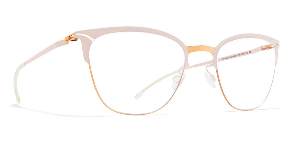 ELBA Eyeglasses by Mykita®. Color: Champagne Gold/Mellow Purple, Champagne Gold/Aurore, Silver/Black, Size: 43-19-135. MYKITA glasses feature minimalist, elegant design, lightweight construction, and sophisticated details, which makes them perfect for people with a refined taste. There are no bold logos or any other luxury codes. Instead, much attention is paid to the construction, materials and surfaces. Each frame is an unbeatable mix of new technologies and traditional craftsmanship. All glasses are meticulously made of premium-grade stainless steel, acetate or MYLON by the most experienced artisans in Berlin.