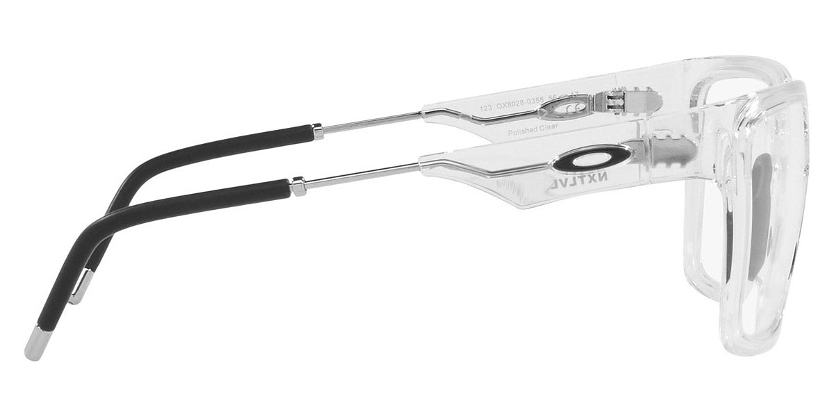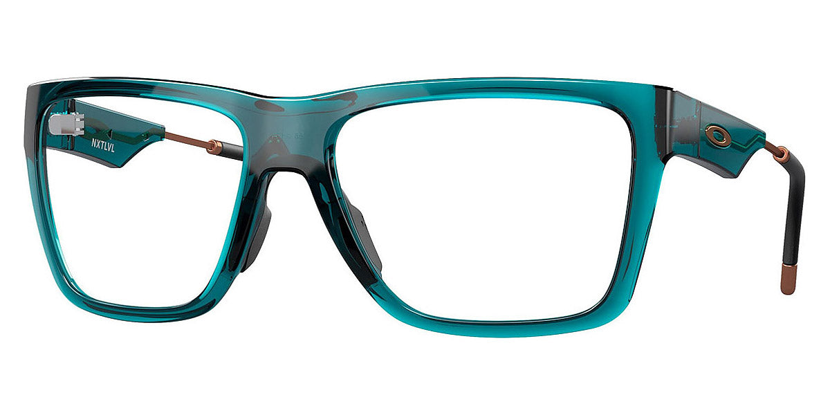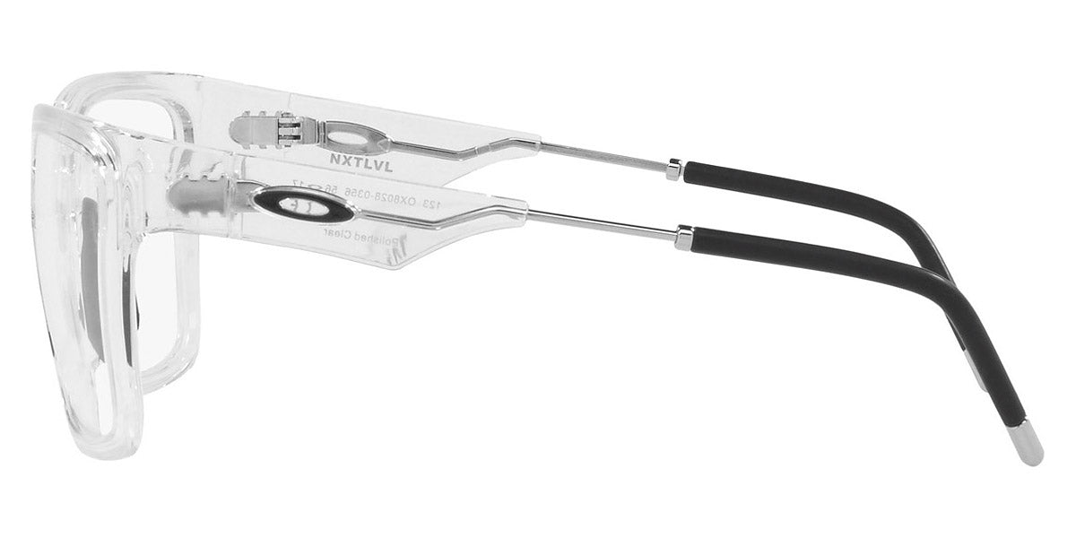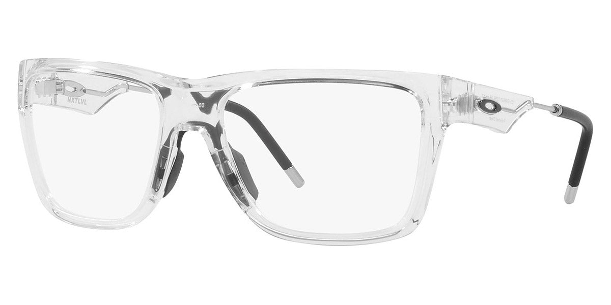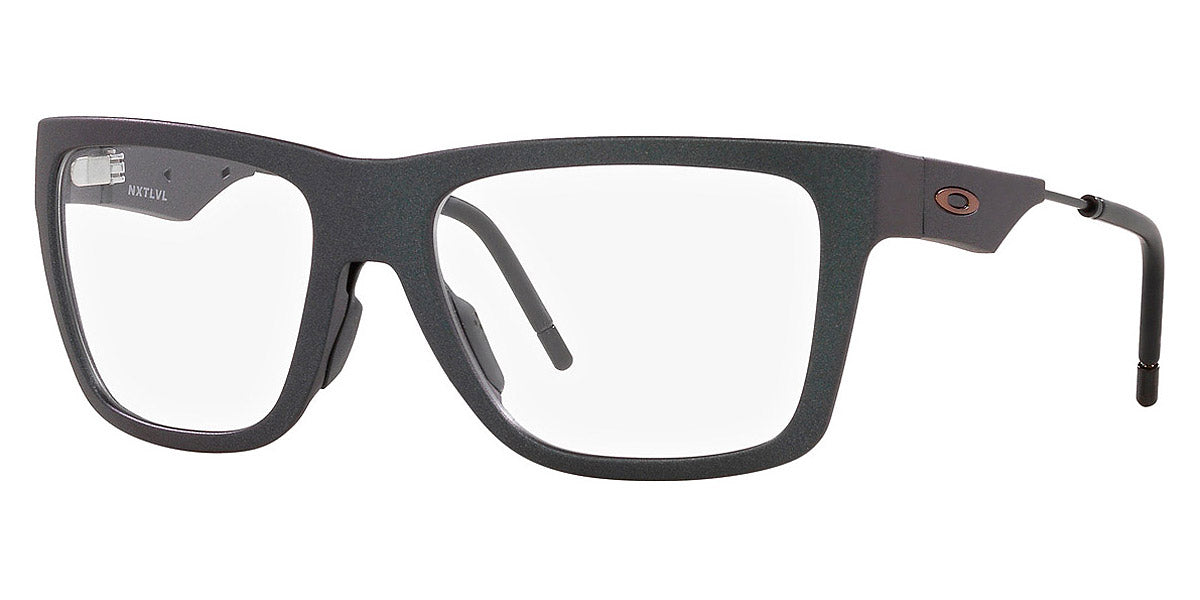 The Oakley NXTLVL (OX8028) is designed with gamers in mind, offering comfort and function under headsets. It features a durable yet lightweight O-Matter™ front and mixed O-Matter plus C-5™ metal temples, giving the frame both strength and flexibility. The eyeglasses are made with TruBridge Sport Unobtainium nosepads and earsocks grip securely, holding steady through heat and action. Generous oversized square shape gives maximum yet sleek and modern styling.