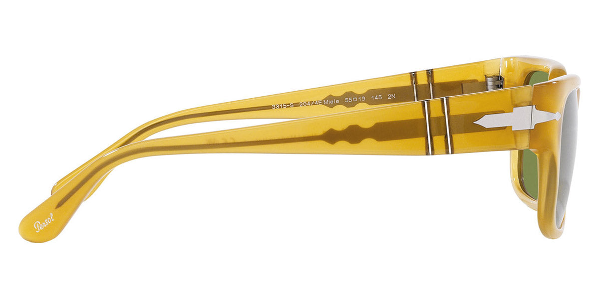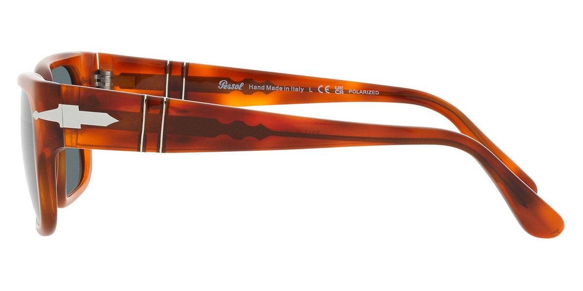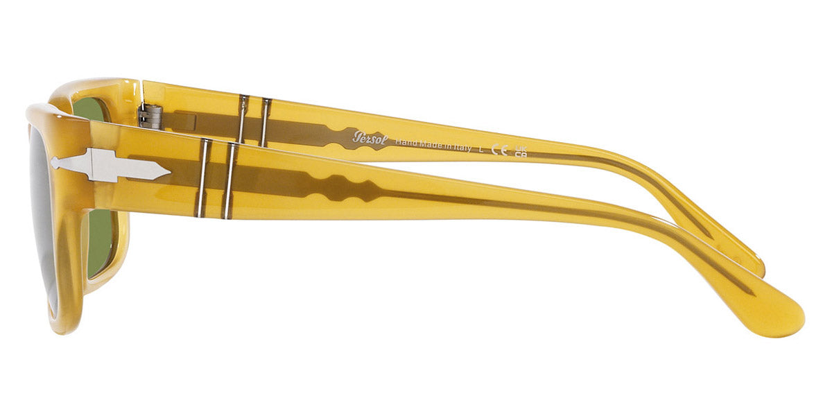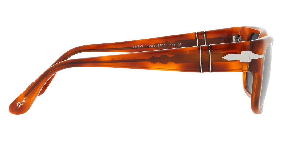 PO3315S Sunglasses by Persol. Shape: Rectangle, Material: Acetate, Frame Type: Full Rim, Color: 110358 Transparent Taupe Gray / Polarized Green, 121948 Smoke / Polar Black, 204/4E Miele / Green, 24/33 Havana / Brown, 95/31 Black / Green, 95/S3 Black / Light Blue Gradient Dark Blue, 96/3R Terra Di Siena / Dark Blue Polarized, Size: 55-19-145, 58-19-145.